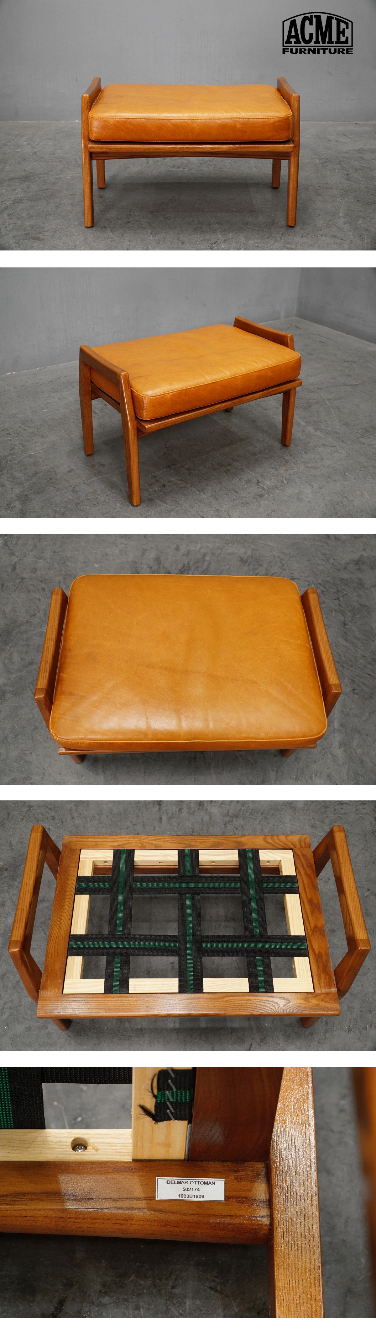 ◇ACME Furniture(アクメ ファニチャー) DELMAR OTTOMAN (デルマー オットマン)です。 表情豊かなオイルドのカウハイドレザーの質感と、軽快感のあるウッドフレームが絶妙なバランス。サイドフレームは持ち運びの際に取っ手としての役割も果たします。オットマンとしてだけでなく単品でスツール使いもできます。 参考新品価格(約):52,800円 |