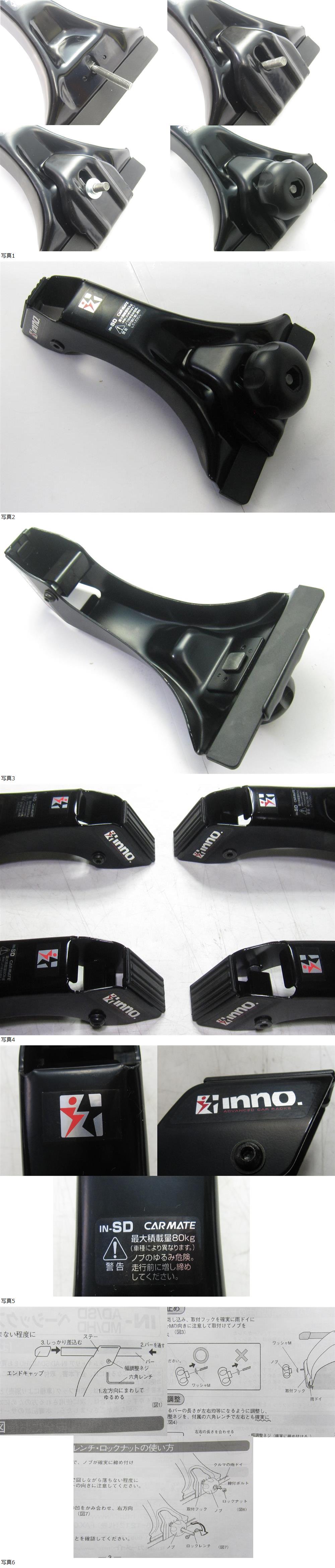 こちらの「IN-SD」はキャリアベースキットです。キャリアバーは付属していませんのでご注意下さい。○こちらのキャリアベースセットはINNO製キャリアバーと組み合わせて使用する汎用品です。いずれかの車種専用品ではありませんのでご注意下さい。出品タイトルに記載の車種も含め、適合・装着可否に関してご質問頂いても当方では一切分かりません。また、INNO製以外のメーカーのキャリアバーとの適合は当方ではわかりません。