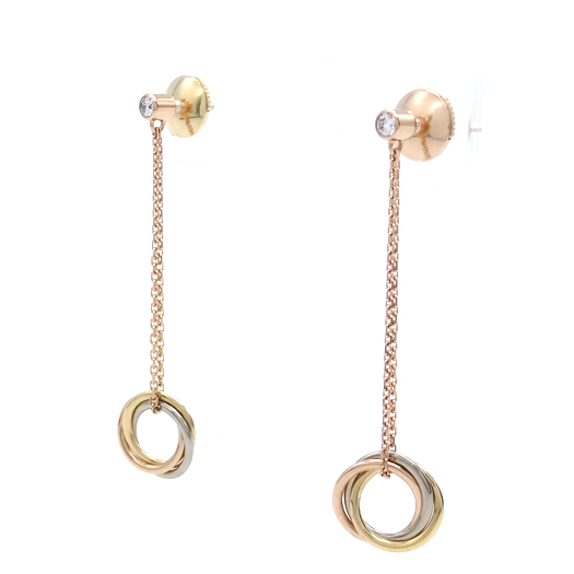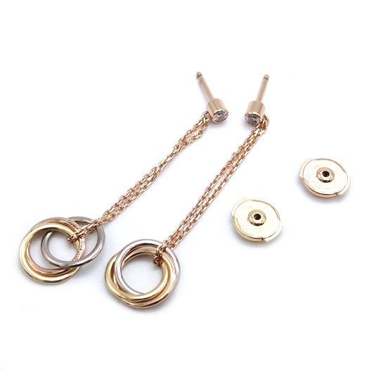 | カルティエのピアス「スウィートトリニティ 2Pダイヤ ピアス」です。動きに合わせて揺らめくトリニティがお洒落で可愛らしいピアスです。 | ||