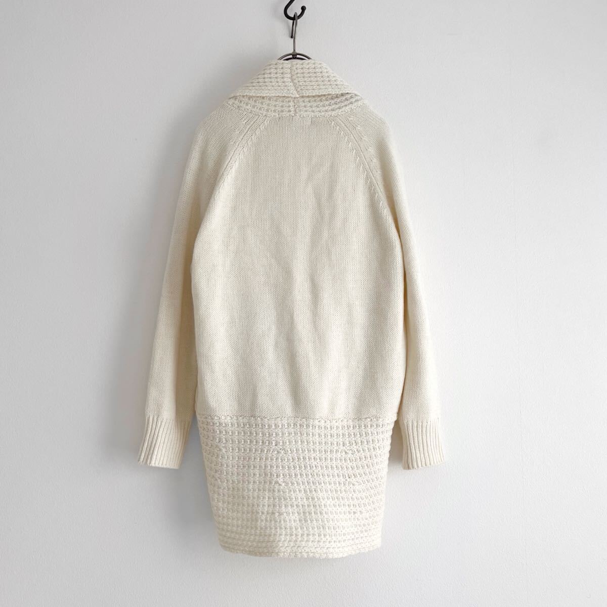 チクチクしない柔らかい素材のニットカーディガンです。 腕周りは締め付け感はなくゆとりがあるので着やすいかと思います。 汚れや傷などのダメージはなく全体的に綺麗です。 【ブランド】 自由区 【カラー】 ホワイト 【表記サイズ】 38 【平置きサイズ】 着丈 72cm 身幅 52cm 裄丈 71cm 【素材】 羊毛35% アクリル35% アルパカ30% 他にも多数出品しております。 こちらをクリック |