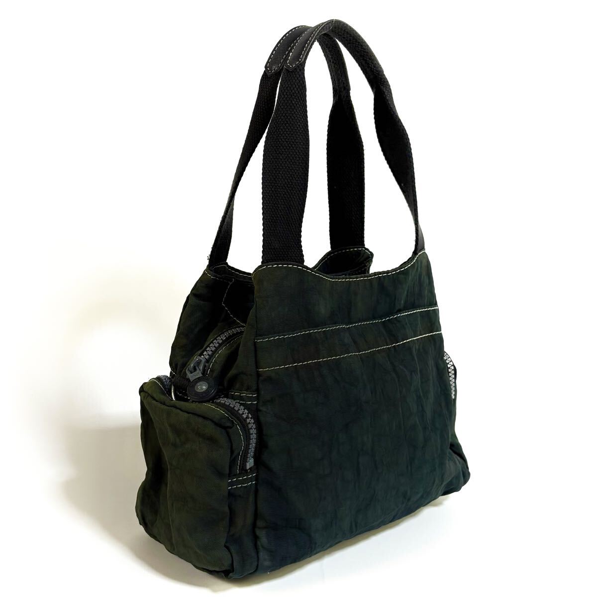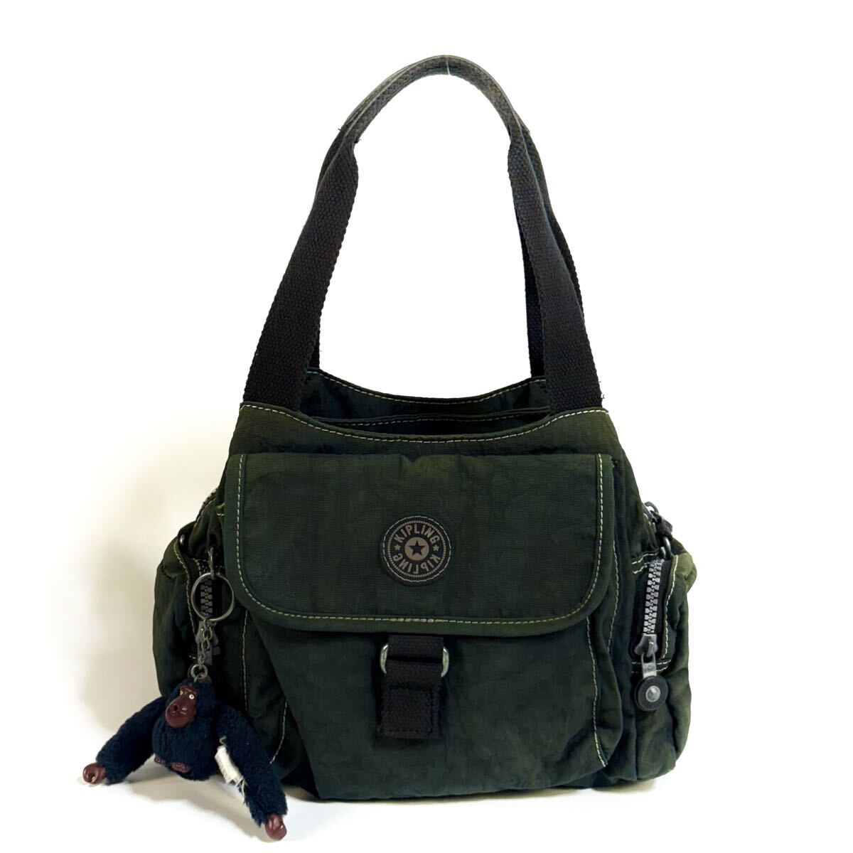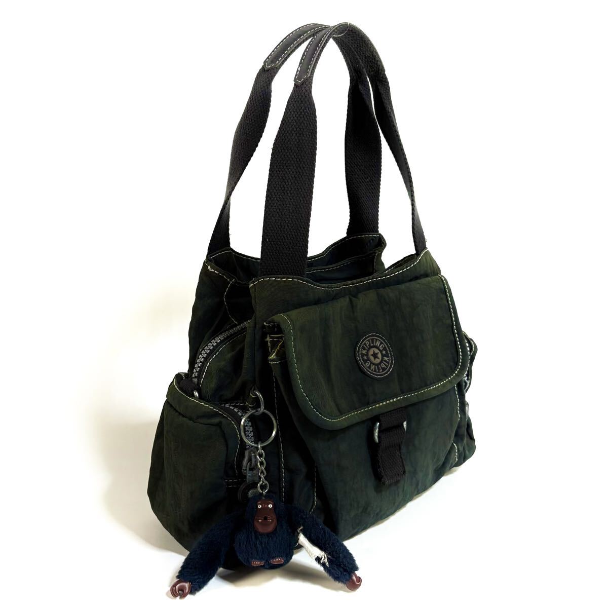 | KIPLING キプリング ナイロン レザー ハンドバッグ トートバッグ オリーブ グリーン キーホルダー バッグ チャーム 付 |