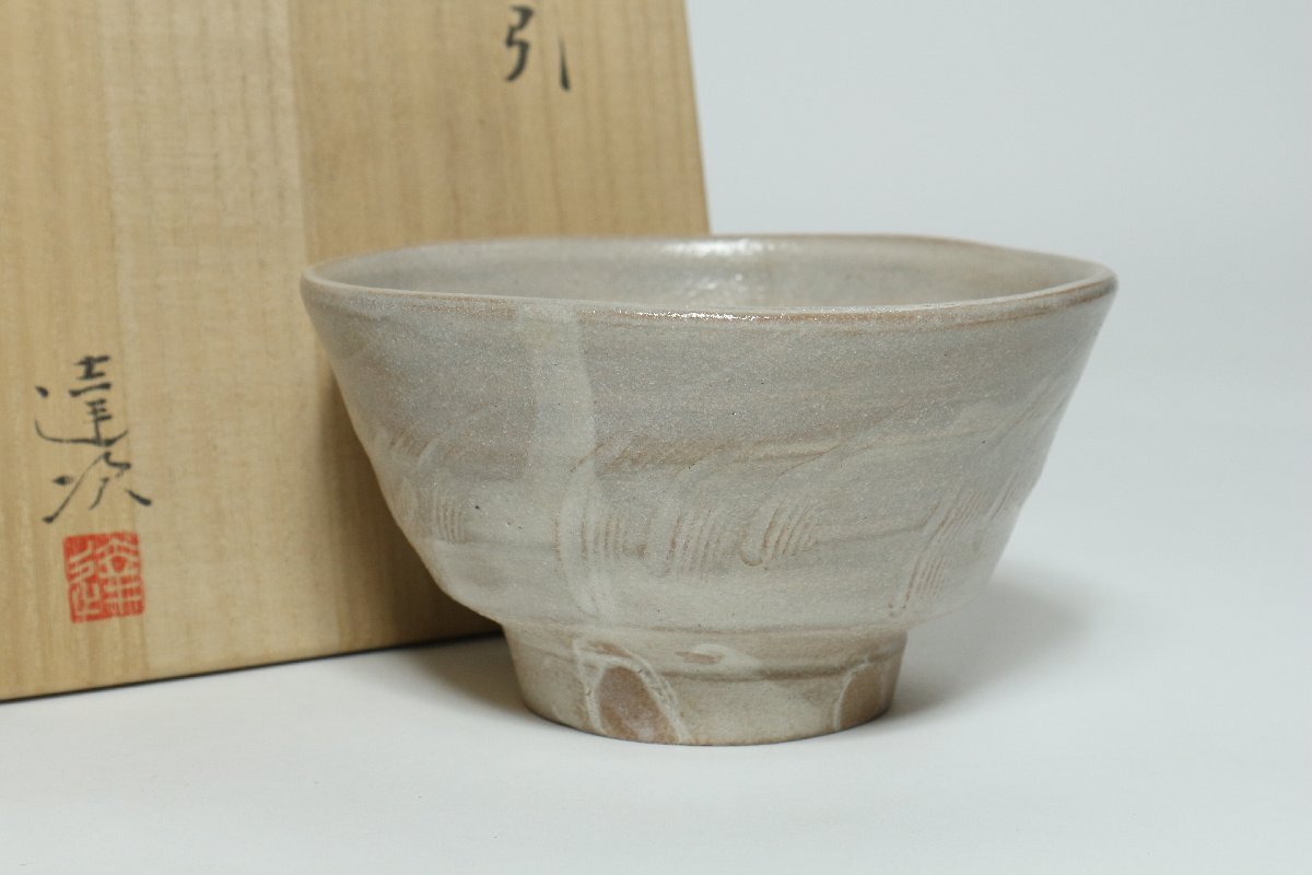 | ・加藤達次 粉引 茶碗 勅題:風 共箱 /茶道具 茶器 粉引茶碗 |