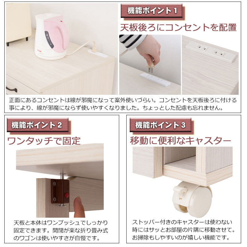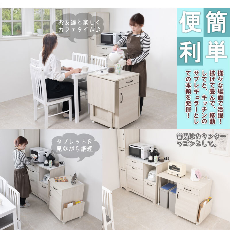 ■商品について/折り畳み式で使いやすい折りたたみ式ワゴンデスクが登場。ダイニングサイドにカウンターとして、デスクとしても様々なシーンで使える便利なワゴン。使わないときは天板をたたんで、使う時だけ出せる省スペース設計。コンセントも付属し、使って分かる機能美をぜひ実感してください。| 出价者 | 信用 | 价格 | 时间 |