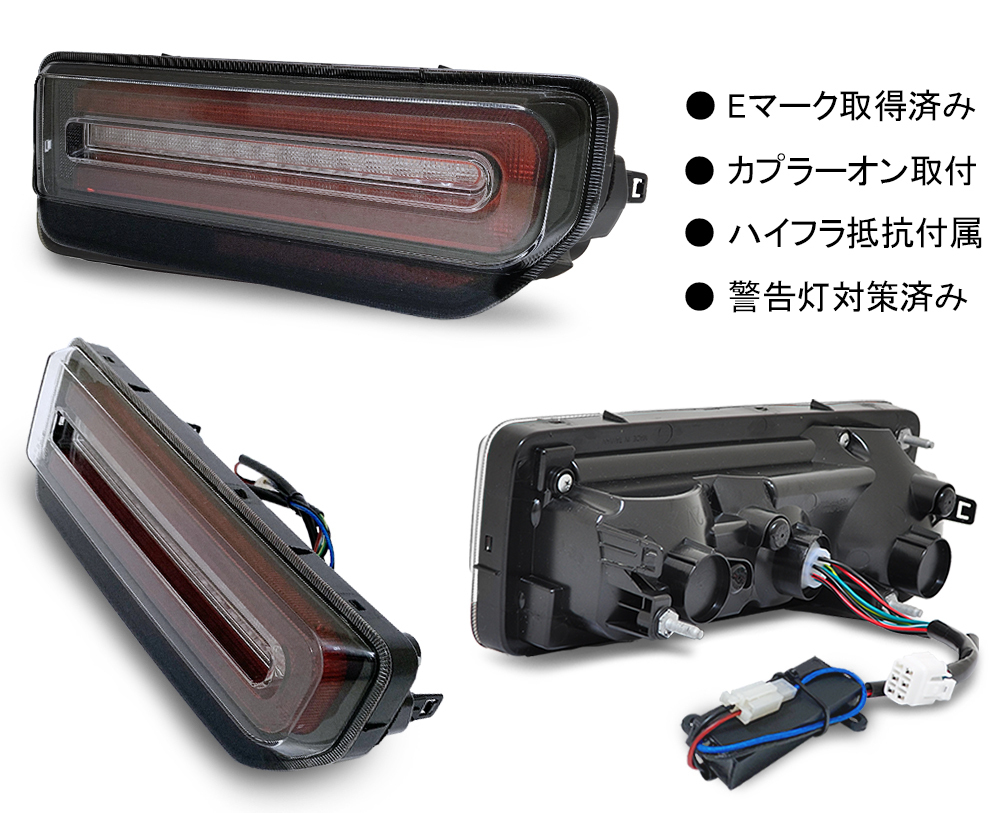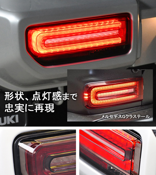 商品番号:L225BK 車種:JB64 ジムニー/JB74 ジムニーシエラ 商品名:GタイプLEDテール カラー:ブラック ----------- ※ご注文後のカラー変更はご対応致しかねますので ご入札前に必ずカラーをご確認下さい。 他のカラーの出品ページは 【 こちら 】 ▼ 商品説明 クリスタルアイ 新製品 JB64 ジムニー/JB74 ジムニーシエラ GタイプLEDテール 流れるシーケンシャルウインカータイプ 立体的なレンズ面とレンズ下部をスモークにすることで メルセデス新型Gクラスのテールを再現した、本物志向のLEDテールです。 (レッドスモークタイプの下部以外は、スモークが掛かっておりません。 鮮やかなレッドクリアーになります。) スムーズかつダイナミックに流れるシーケンシャルウインカー採用で まさに高級車のような華やかさを与えます。 ▼ 商品詳細 ■新品セット ■高輝度シーケンシャル ウインカーLED ■ハイフラ防止抵抗付属 ■カプラーオン取り付けOK ■Eマーク(※1)取得済み ■取り付け説明書 保証書付属 ▼ 適合車種 JB64/JB64W ジムニー JB74/JB74W ジムニーシエラ オールモデル 安心の水漏れ、LED切れ1年保証付き。 ※1 保安基準適合品 |