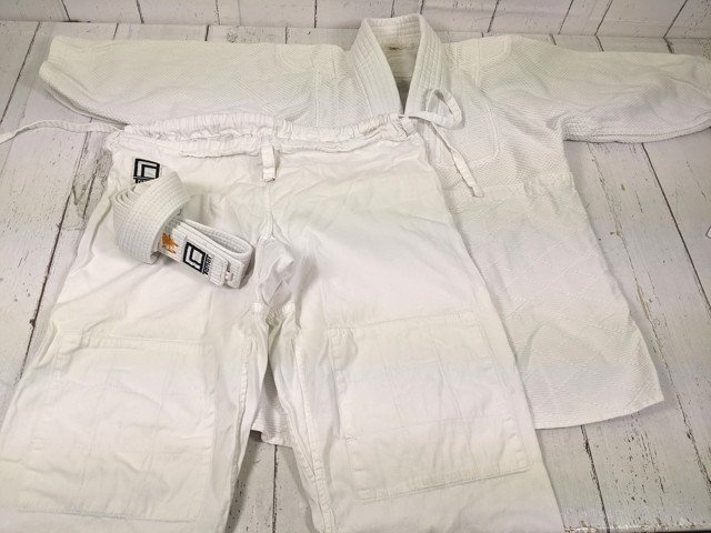 | 格闘技 柔道着上下セット 上衣(Tanei 白 サイズ1) 肩幅:約40cm 身幅:約46cm0 着丈:約66cm 袖丈(肩上~袖口まで):約37cm ズボン(白 サイズ1) ウエスト:約94cm 丈:約73cm 股下:約52cm 帯(白 サイズ1) ・個人名の刺繍が御座います。 ※商品一つ一つの梱包は行っておりません。 その為、まとめて梱包した状態での発送とさせていただきます。 -------------------- その他多数商品を出品中!! 出品商品一覧は→こちらをクリック -------------------- | ||||||||||||