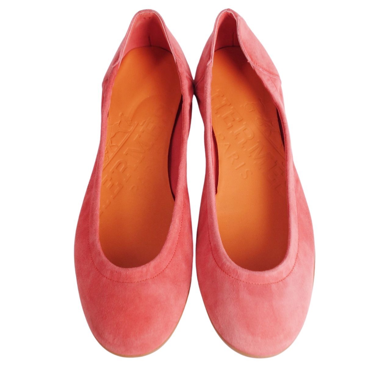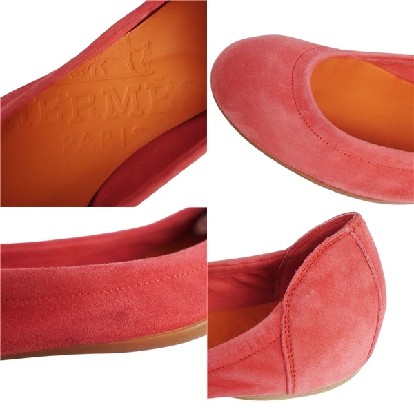 | 美品 エルメス HERMES パンプス フラットパンプス バレエシューズ スウェードレザー シューズ 靴 37(24cm) ピンク |