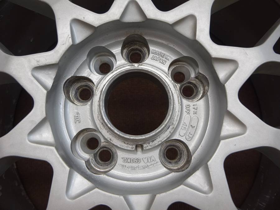 ホイールの設定 7J オフセット+45 PCD114.3 4、5穴 ハブ径 約73mm ホイールの重量 約7.5kg ※センターキャップがございません。 ※状態ですが傷、リムガリ傷、腐食、ダスト汚れがございます。 その他の状態ですが見解にて歪み、割れ等はございませんでした。 (個人差はございますので写真で判断宜しくお願い致します。) | ||||