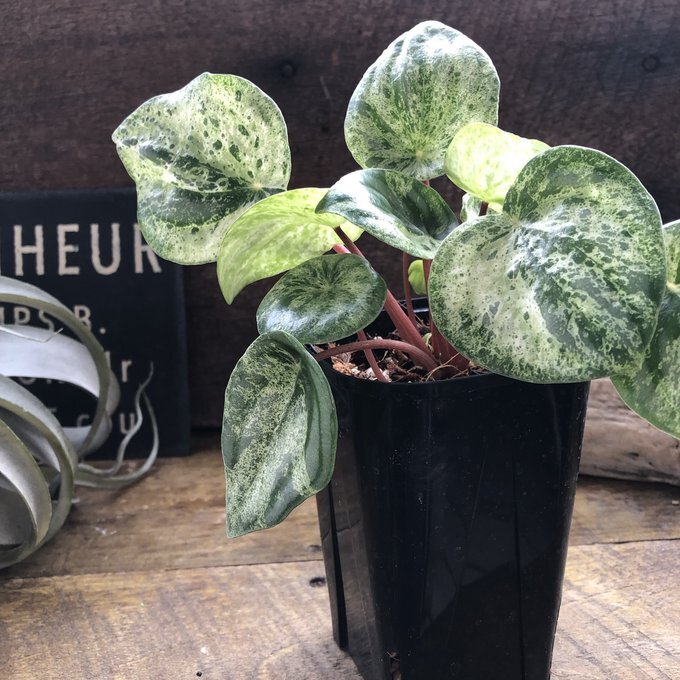 ご覧頂きありがとうございます。 希少な斑入りの雪兎 斑入りのサンデルシーです。 「斑入りスイカペペロミア」と呼ばれる、面白い姿の観葉植物。 とても斑入りは希少で売ってないんです。 気になる方は、この機会に! 葉が宙に浮かぶような面白い植物「ペペロミア・サンデルシー」。 別名「スイカペペ」 ペペロミア・サンデルシーという名前は知らなくても、「スイカペペロミア」と言う名前は知っている人が多いですね。 見ての通り、スイカの様な葉を次から次へとだす、面白いペペロミア。 小さな芽が株元からピュッ―と伸び、その間に葉がだんだん生長。 やがてその葉は、重みでゆっくり垂れ下がります。 3.5号ポットに入っています。 管理法 直射日光が苦手なので、直射日光の当たらない明るい場所に置いて下さい。 表面が乾いてから水をあたえます。 水の与え過ぎには注意してください。| 出价者 | 信用 | 价格 | 时间 |