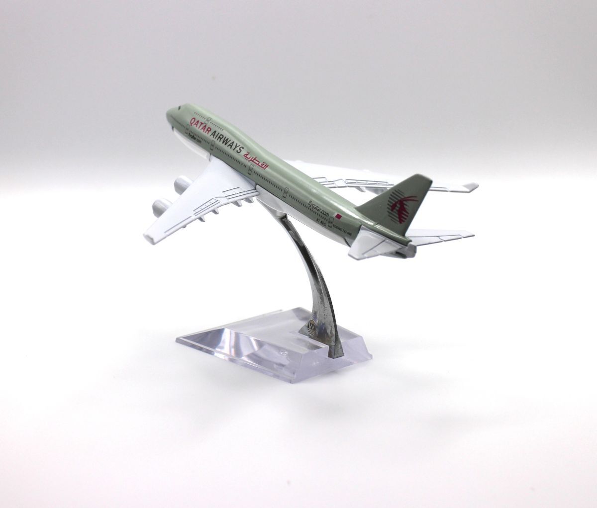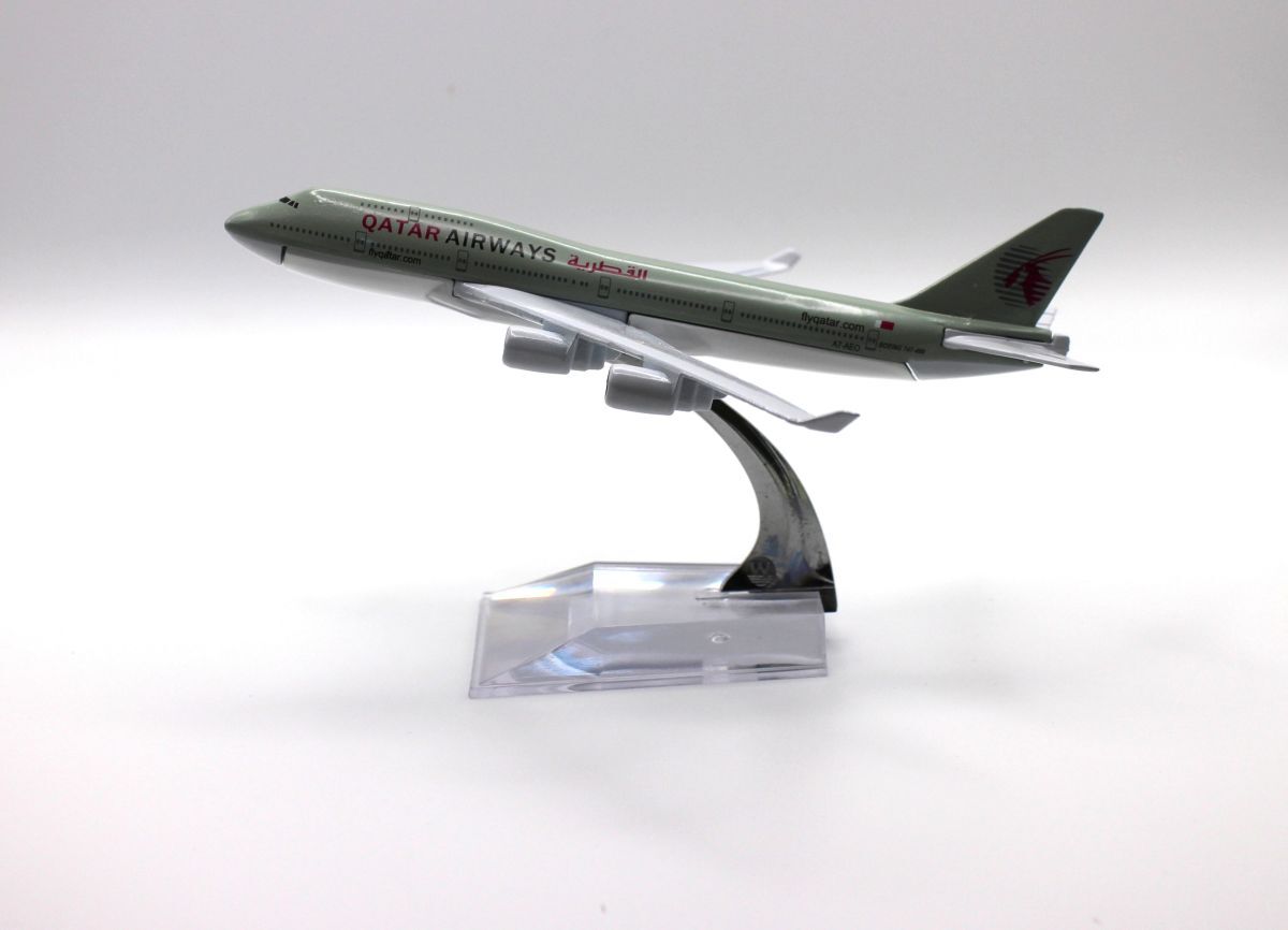 中東・カタールのフラッグキャリア、カタール航空(Qatar Airways)のボーイング747型機の全長約16センチのダイキャストモデルプレーンです。