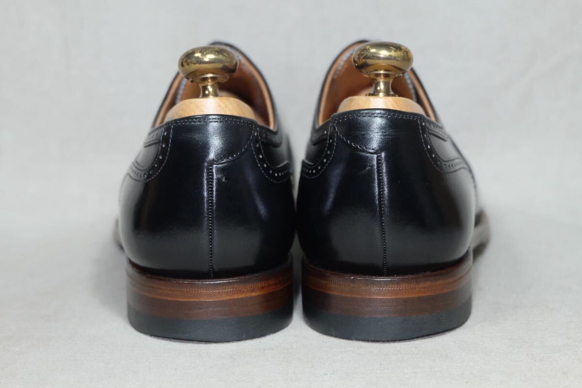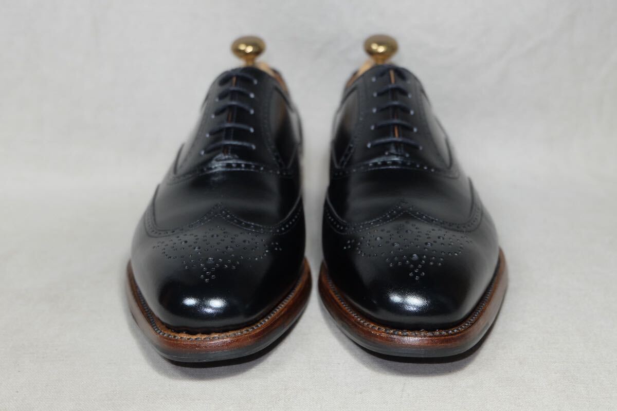 この度はアクセスありがとうございます。 日本の老舗高級革靴メーカー スコッチグレイン の作り、デザイン共に素晴らしいオックスフォードシューズになります。永い時間をかけて作られた上質で艶のあるフランスのアノネイ社製最高級ボカルーカーフレザーを贅沢に使用し、ソールも質の良いレザーソールに伝統のGoodyearWelted製法で作られ、タフで堅牢、そしてソール交換も可能になっております。ビジネスから冠婚葬祭、ドレスカジュアルの足元にも合う万能な1足です。三陽山長、J.M.WESTON、チャーチ、オリエンタルなど質実剛健な靴がお好きな方にオススメの一足です。日本の高級製靴技術が楽しめる美しく仕上げられた極上の1足です。 この機会にぜひご検討よろしくお願いします。 サイズ:24.5cmEEE 型:245 アウトソール:29.6cm ソール最大幅:10.7cm ソール:レザーソール カラー:ブラック 製造国:日本 素材:カーフレザー 状態:10段階中【8.5】 アッパー:まだまだ永く使用いただける美品です。 ソール:まだまだ永く使用いただける美品です。 付属品:なし 基本的にはノークレームノーリターンなのでご不明点等あればお気軽にご質問、ご連絡ください。 注意事項 確認はしておりますが、中古品のため小さなキズ、汚れ等を見落とす場合があるので神経質な方はご入札をお控えください。 サイズはあくまで標準的なサイズ感なので、実寸やメーカーサイズをご参考頂きますようお願いいたします。 三日以内にご連絡いただけない場合、評価の末再出品させていただきますのでご了承ください。 | |||