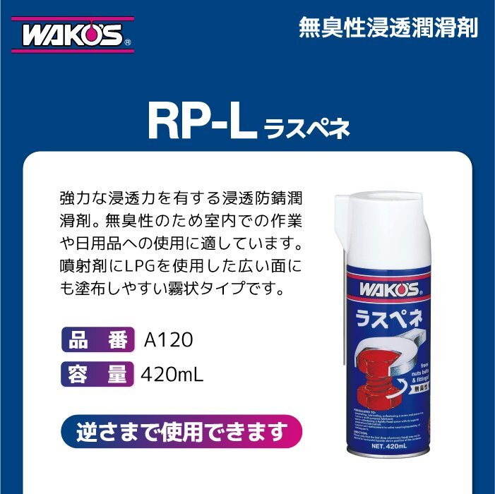 | 無臭性浸透潤滑剤 強力な浸透力を有する浸透防錆潤滑剤。 無臭性のため室内での作業や日用品への使用に適しています。 噴射剤にLPGを使用した広い面にも塗布しやすい霧状タイプです。 ■容量 420mL |