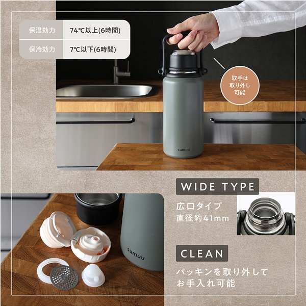 真空断熱のダブルステンレスで、保温保冷に優れた大容量ボトル。