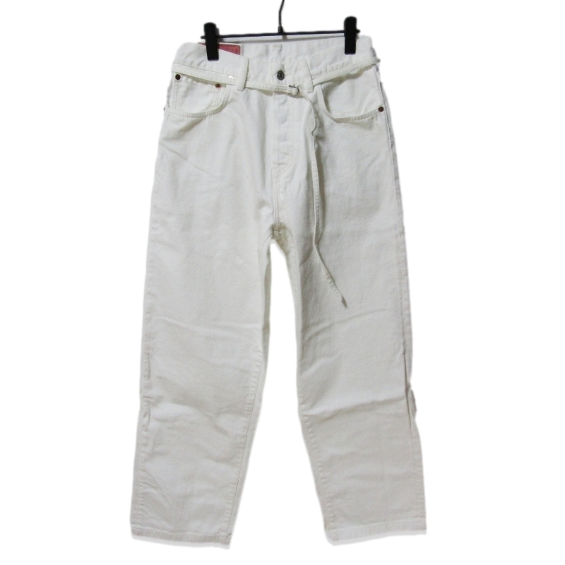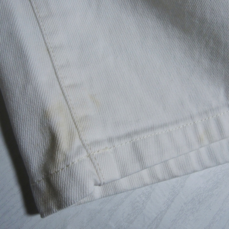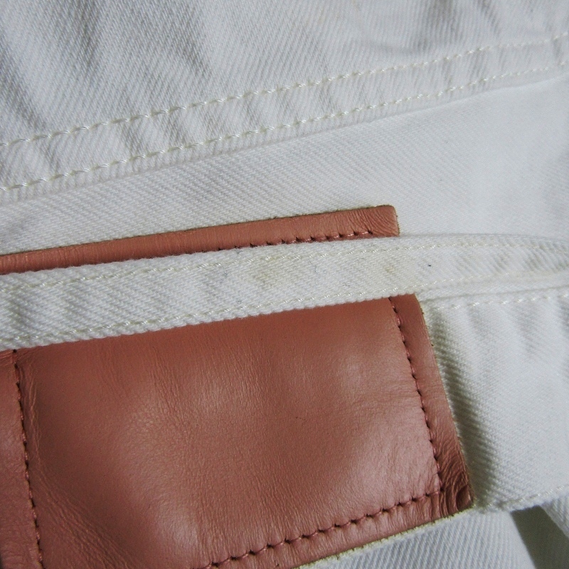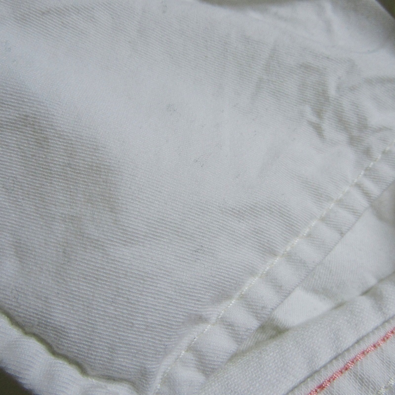 | 状態 | C 中古:目立つダメージがあり使用感の多い商品です。 裾に黒ずみ、変色、右ももにシミ汚れ有、柔軟剤のにおい移り有。除菌洗濯済み。ベルトに色移り有り。ややシワ有り。ポケット内側毛玉有。 |