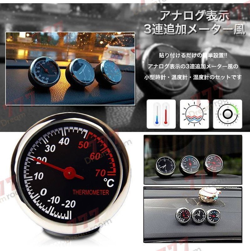 アナログ 3連メーター風 温度計 湿度計 時計 ブラック マルチ車載 アクセサリー ラグジュアリー 車 インテリア 装飾飾り 自動 車時計