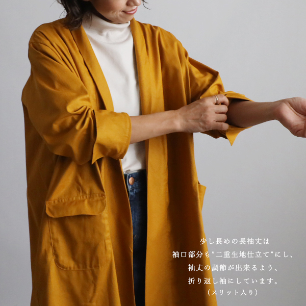 袖丈の調節が出来るよう、折り返し袖にしています。