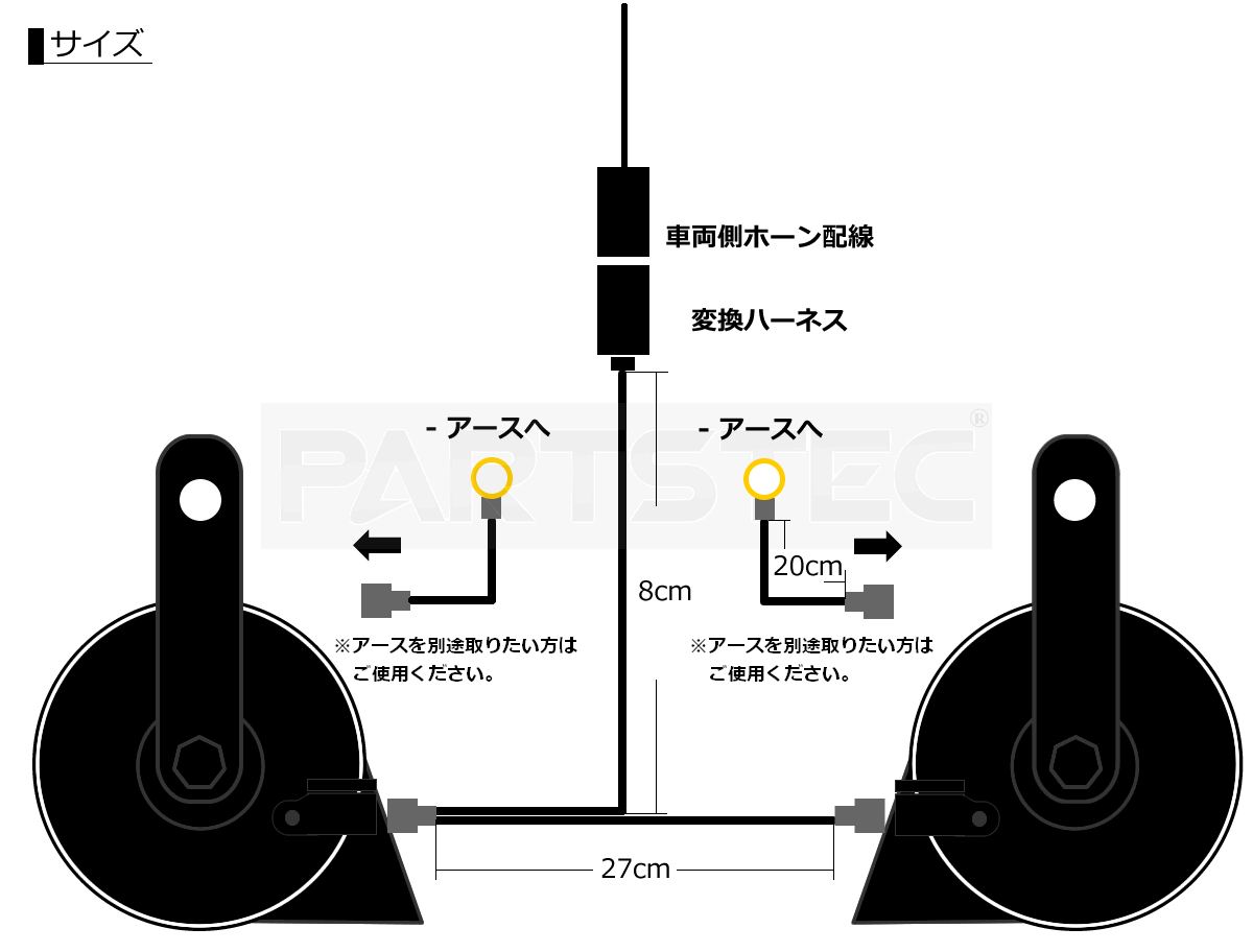 | セット内容 | ・ホーン:2個1セット ・ワッシャー:2個 ・ホーン二股変換ハーネス×1・アース接続用配線×2 ※取付説明書は付属しておりません |