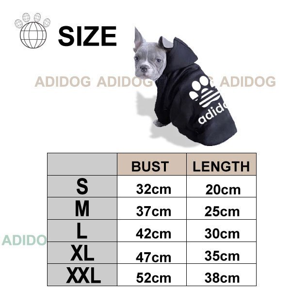 | ☆NEW ADIDOG パーカー ※ご購入されましたらオーダーフォームの【ご要望】欄にご希望のサイズとカラーをご記入ください。在庫ご確認ください。 カラー:ピンク,ブラック,グレー,レッド,ブルー サイズ:S ,M ,L ,XL ※在庫状況 以下在庫切れになります。 ピンク:M L XXL:在庫切れ ブラック:M L XL:販売終了 グレー:XL XXL:在庫切れ レッド:M L XL XXL:在庫切れ ブルー:XL XXL:在庫切れ 【商品名】 NEW ADIDOG パーカー 【素材】 ポリエステル 【サイズ】 ■S ■M ■L ■XL ■XXL 【カラー】 ■ピンク ■ブラック ■グレー ■レッド ■ブルー 【この商品の特徴・おすすめポイント】 ◆オシャレでクールなデザインのスウェットパーカー”NEW ADIDOG HOODIE”登場! ◆スウェット素材なので秋冬のお散歩に最適! ◆クールなワンちゃんコーデに一役買います! ◆5色のカラーヴァリエーションからご主人さまとコーディネートを併せて、人気者になっちゃいましょう♪ | ||||