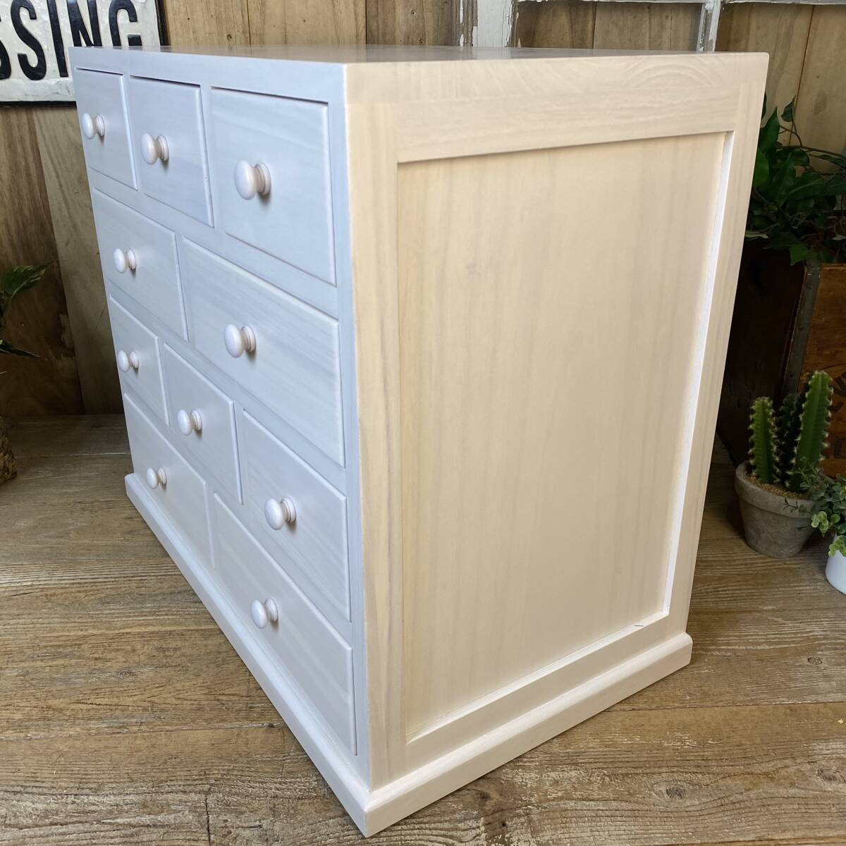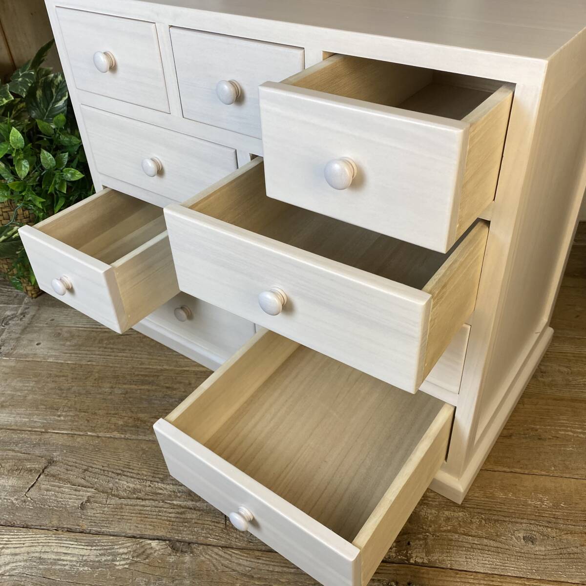 ◆◇商品詳細◇◆ 多引き出しタンスホワイト 落ち着きのあるシンプルな多引出しチェストタンス。桐材の木目を活かした美しい木目デザイン。桐材無垢板使用で、軽く、持ち運び移動も楽々です。真っ白なお色がどんなお部屋にも合わせやすいですよ!小ぶりなタンスですが多引き出しで収納力があり、お部屋の整理整頓に役立ちます。アパートの小部屋、施設ルーム、寮部屋などに最適なサイズです。この機会に是非どうぞ。 【商品状態説明】 美品。 完成品になります。 ※こちらの商品は、現品画像ではありません。製造段階や輸入段階での小キズ等で検品落ちしたB級アウトレット品の中から順番に発送しております。ほとんど気にならない程度の小キズになり、使用には全く問題はございませんが、気になる場合はご遠慮ください。他に『美品』記載の商品がありますのでそちらをご検討ください。 【サイズ】 横幅:60cm(下部土台含む横幅:62㎝) 奥行:34cm 高さ:53cm 引出し内寸大24.5cm×29cm×8cm 引出し内寸小14.5cm×29cm×8cm 【素材】 木製、桐材無垢 【カラー】 ホワイト 【参考価格】 ¥19.800 | ◆◇発送方法◇◆ ●送料は基本無料ですが、沖縄・離島などにお住まいの方はご負担ください。 (沖縄・離島の方はメールにてご連絡いただければ、送料をお知らせいたします。) ●ヤマト運輸・佐川急便・第一貨物のいずれかにて配送いたします。 (運送会社の指定はできません。ご了承ください。) ●日時・時間指定のある方や、お問い合わせ(追跡)番号をご希望の方は取引連絡の際にお知らせください。 | |
