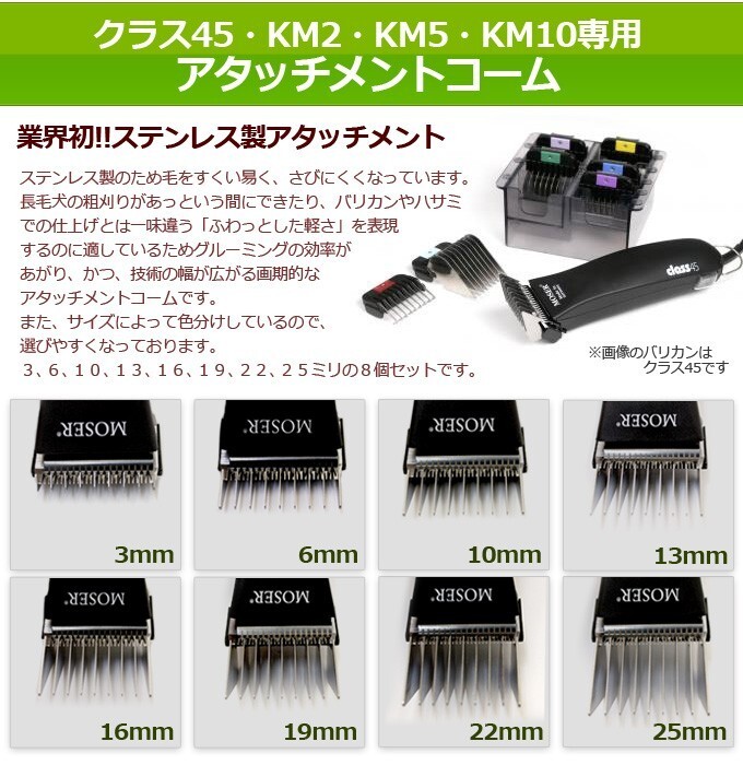 | ★WAHL KM5 KM5単品 KM5+アタッチメント KM5+アタッチメント+除菌スプレー アタッチメントコーム8種セット 専用替刃 Star Series Blade 1245-7320 対応機種:クラス45・KM2・KM5・KM10専用 WAHL(ウォール)社製 ステンレス製アタッチメントコームセット【犬 ペット 業務用 プロ用 サロン トリマー】 ![]() ![]()