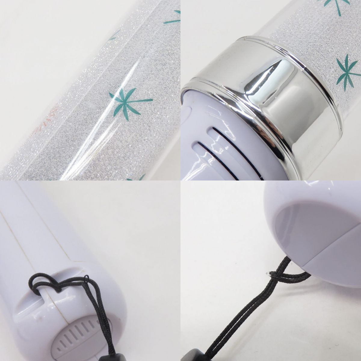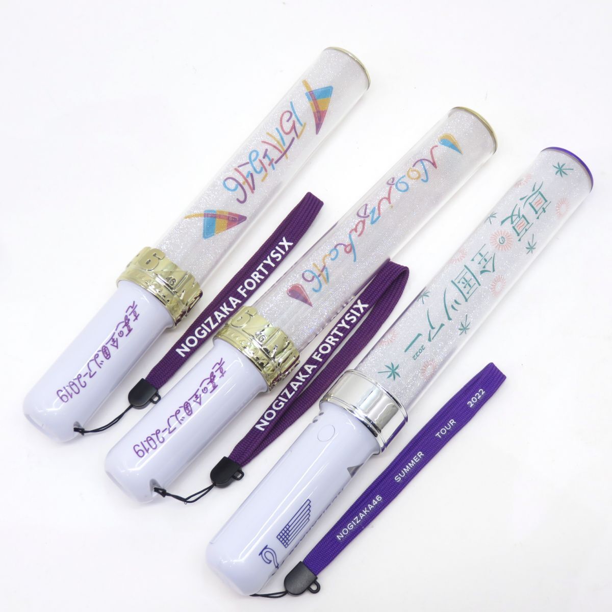 030 乃木坂46 ペンライト 真夏の全国ツアー 2019 2点・2022 1点 計3点 セット ※中古 □内容品 ・真夏の全国ツアー 2019 2点 ・真夏の全国ツアー 2022 1点 ※画像にあるもので全てです。 □状態 ・『2019』の1点、トップにへこみ、装飾部分の『K』に欠けがあります。 ・全体的に擦れ、キズ、ヨゴレがあります。 ・グリップに隙間ヨゴレがあります。 ・ストラップ取り付け部分の紐にダメージがあります。 □動作について 当方所持の電池を使用して、動作確認を行っております。 特に動作不良は見受けられません。 ※※電池は付属いたしません。購入者様で別途、ご用意ください※※ □備考:なし ※クリーニングや消耗品の交換が必要な場合は購入者様でご対応ください。 ※画像では判別しづらいUSED品特有の薄い汚れや薄いキズ、細かいキズなどある場合があります。 |