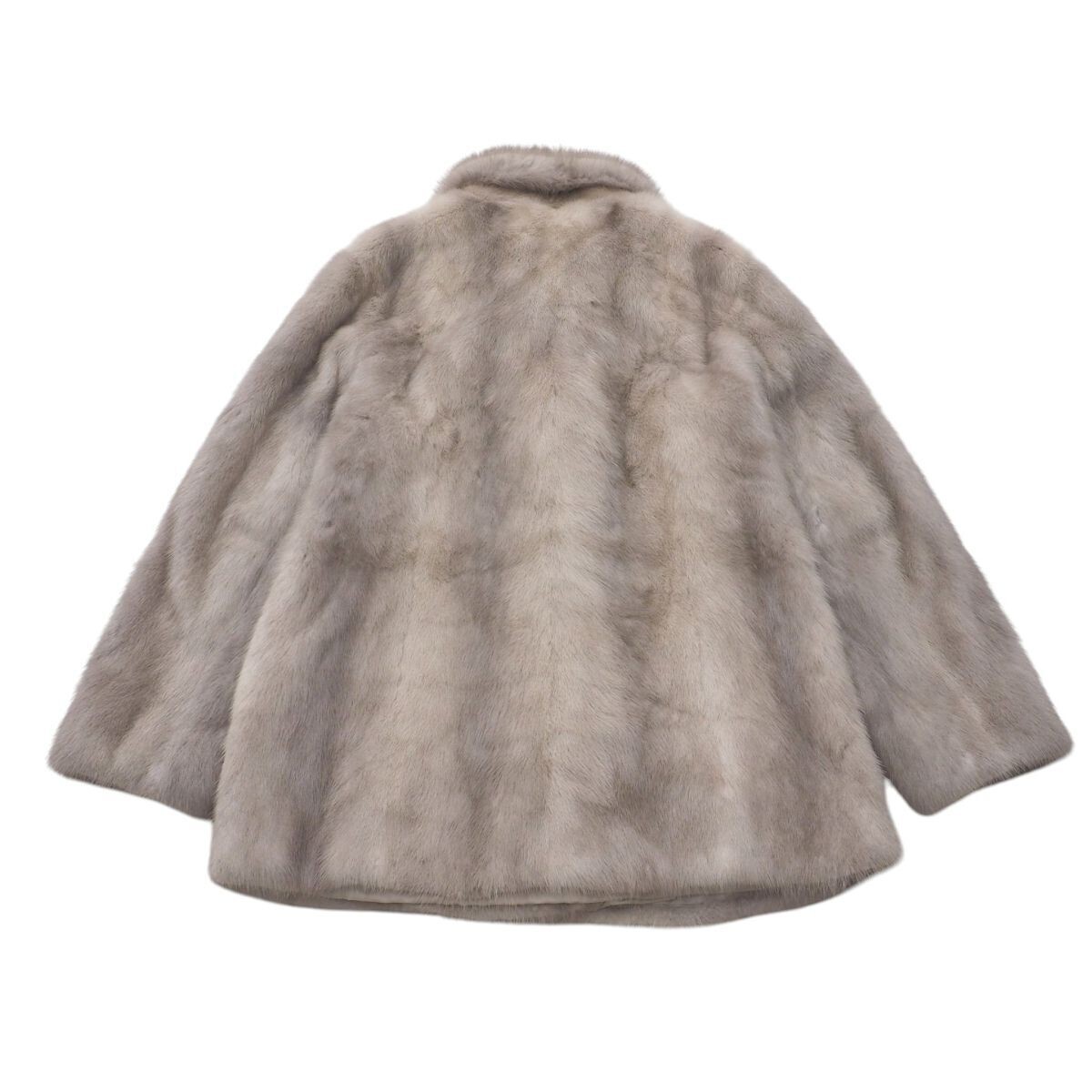 | GS4806◇サファイアミンク 逆毛衿 ファーコート ハーフ丈 ファージャケット 毛皮コート サイズ11 グレー系 | |||