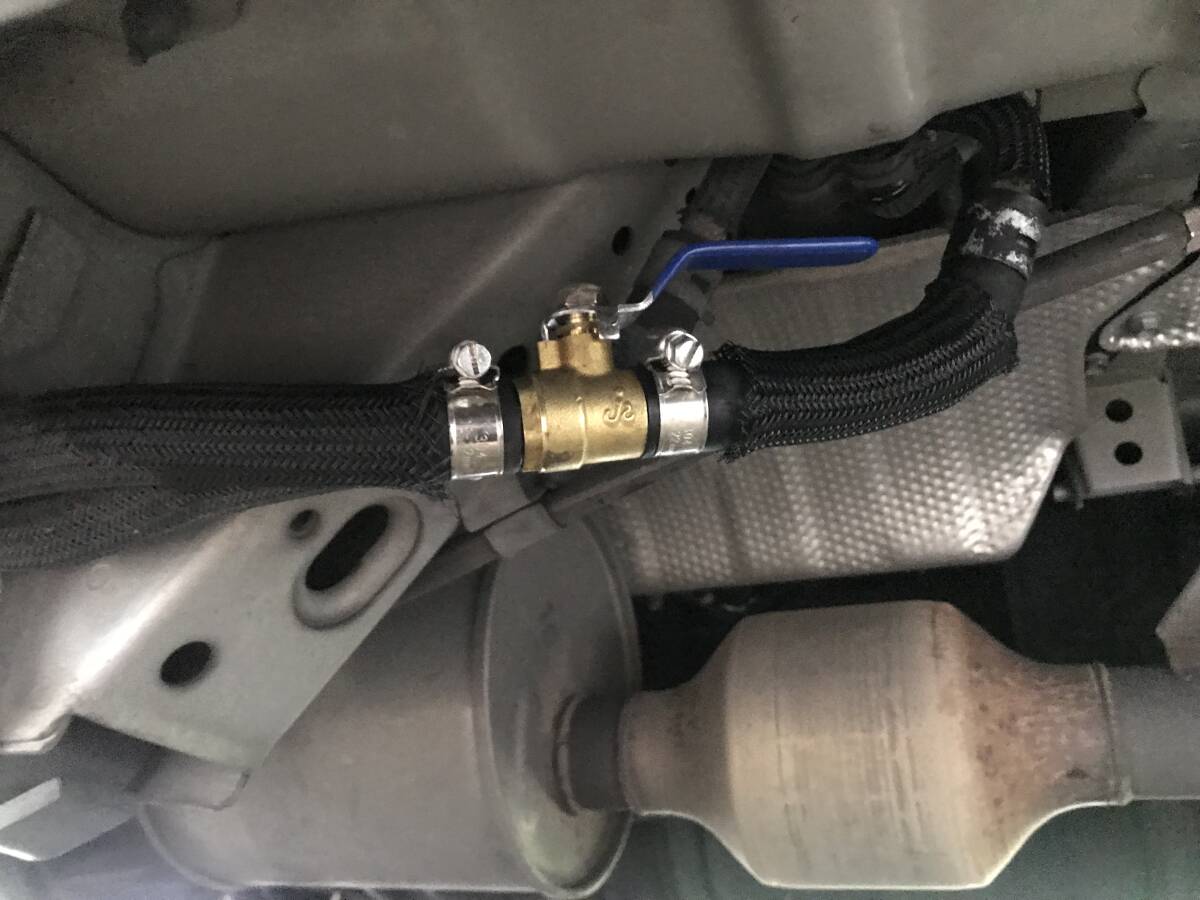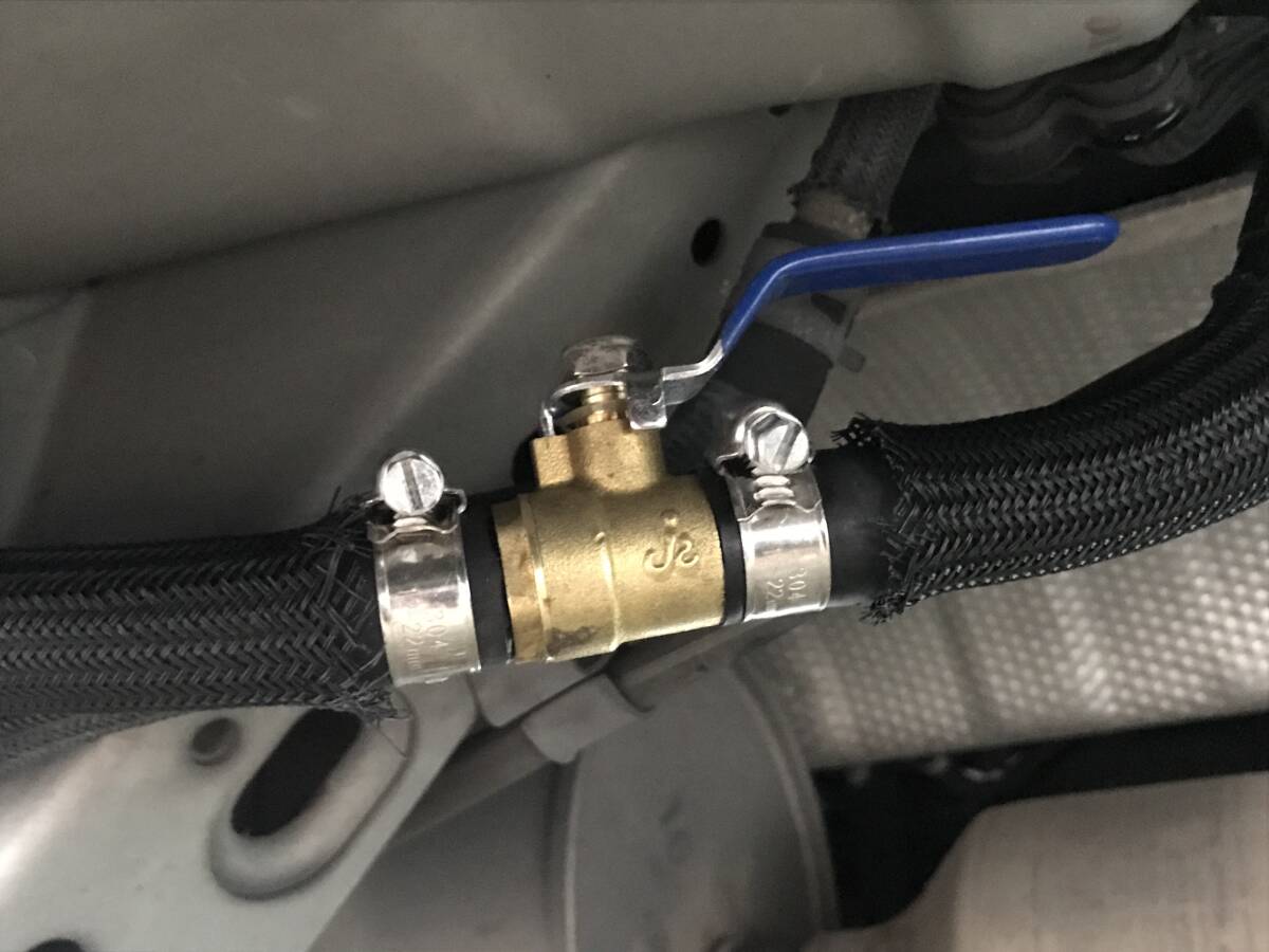 リアヒーターホースに割り込ませ水をカットします。