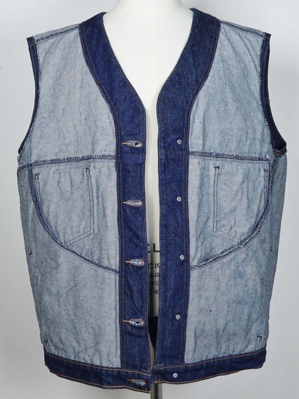 PRISON PRSN BLUES 651 DENIM VEST size 2X USA made プリズンブルース デニム ベスト <色> Rinsed Blue <素材> 100%cotton <サイズ> 2X <寸法> 肩幅48.5身幅62.5着丈69(単位:㎝) <商品状態> 若干の着用感はございますが綺麗なお品です。 <備考> USA製 ■支払方法 YAHOOかんたん決済で落札価格+送料をお支払いください。 ■発送詳細 佐川急便、送料全国一律900円