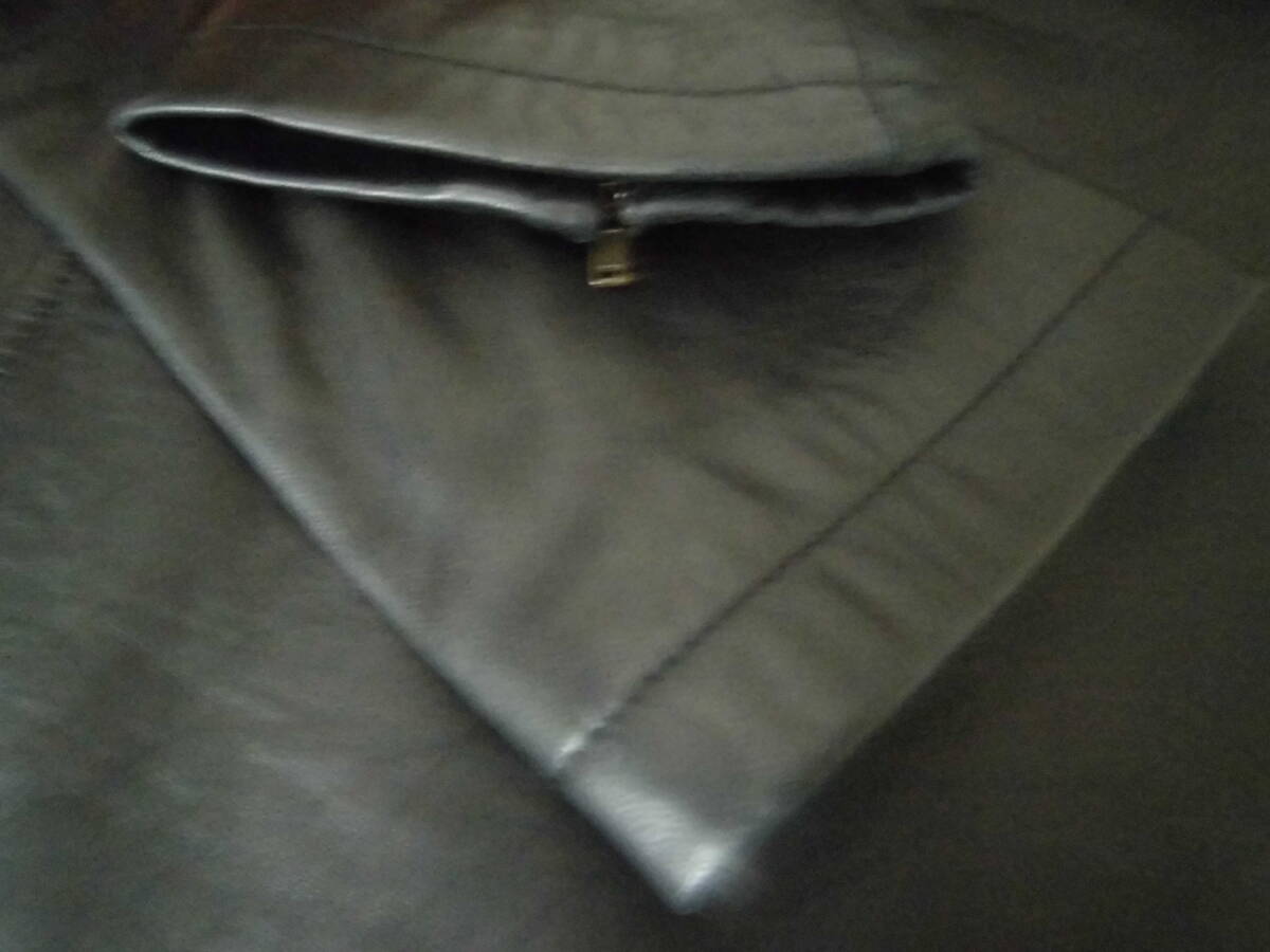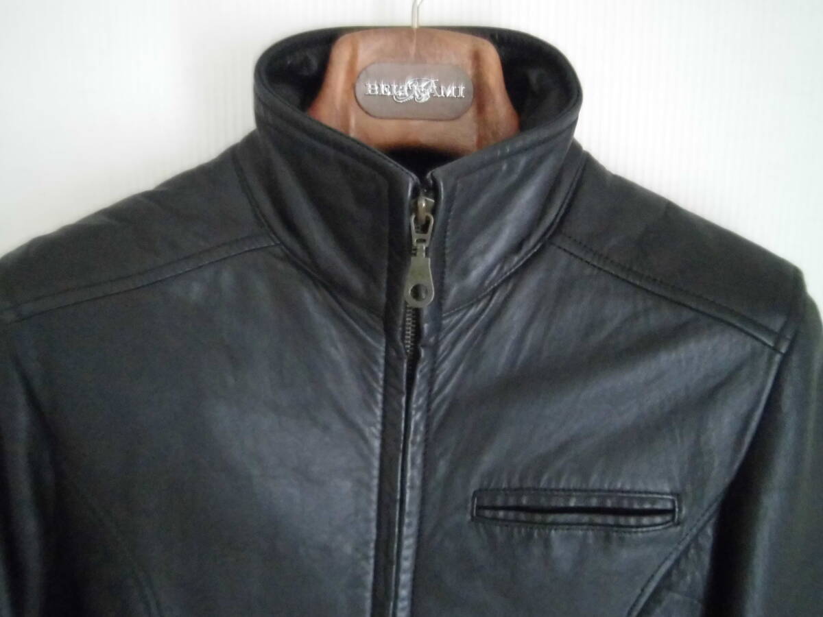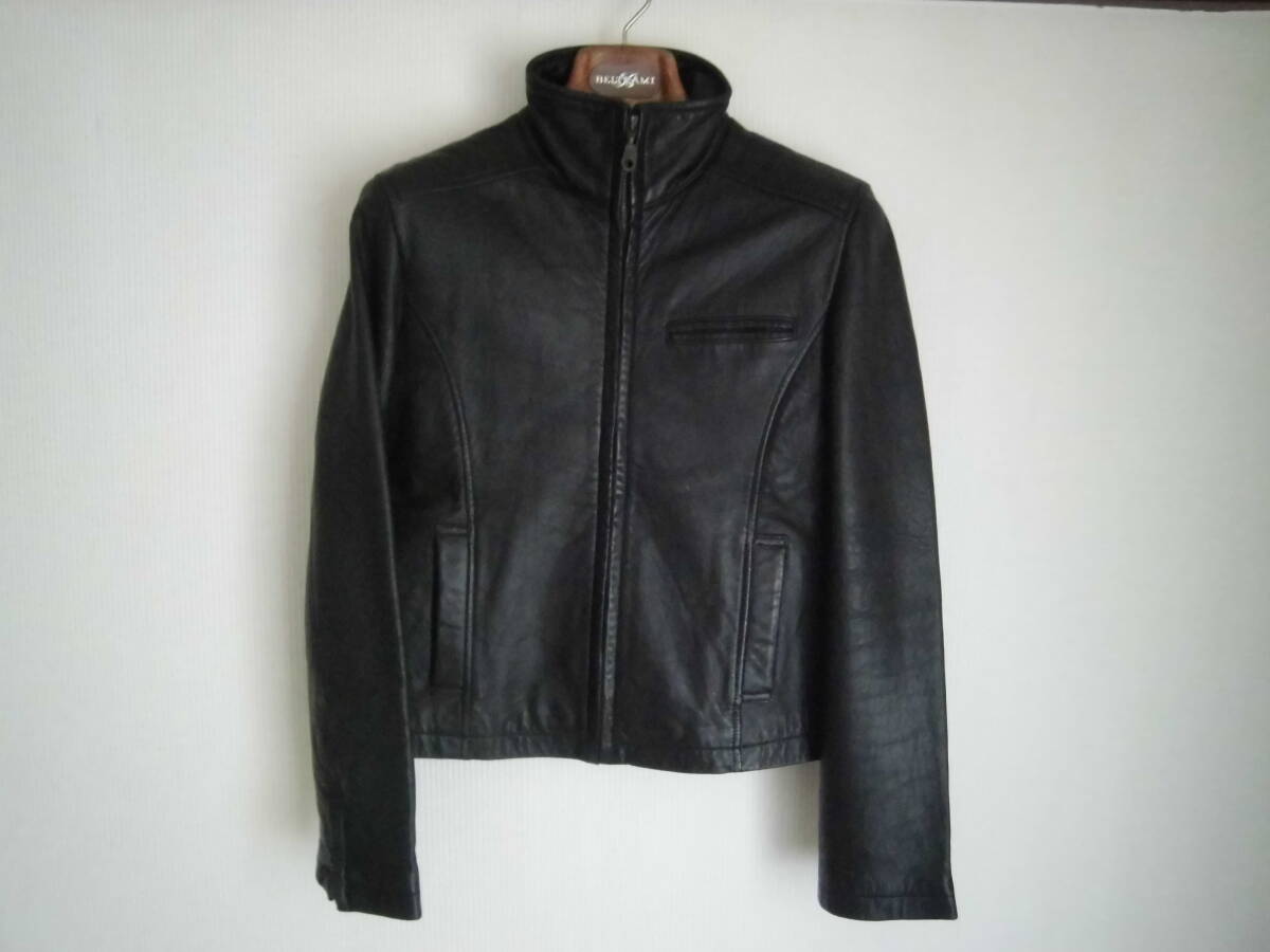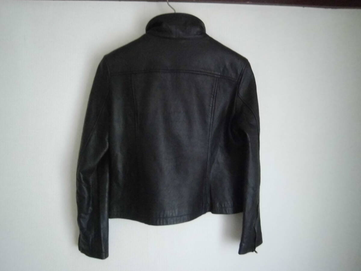 ★着用品の製品です。 ★色はブラック、素材は表示タグを切っていますが羊革です。 ★状態は襟袖口などにスレと、全体的にシワがあります。又ファスナーが少し堅いです。 ★実寸は平置きで、(肩幅41)(袖丈59)(脇下身幅46)(着丈50.5)位です。 ★ライダース風デザインの製品です。 |