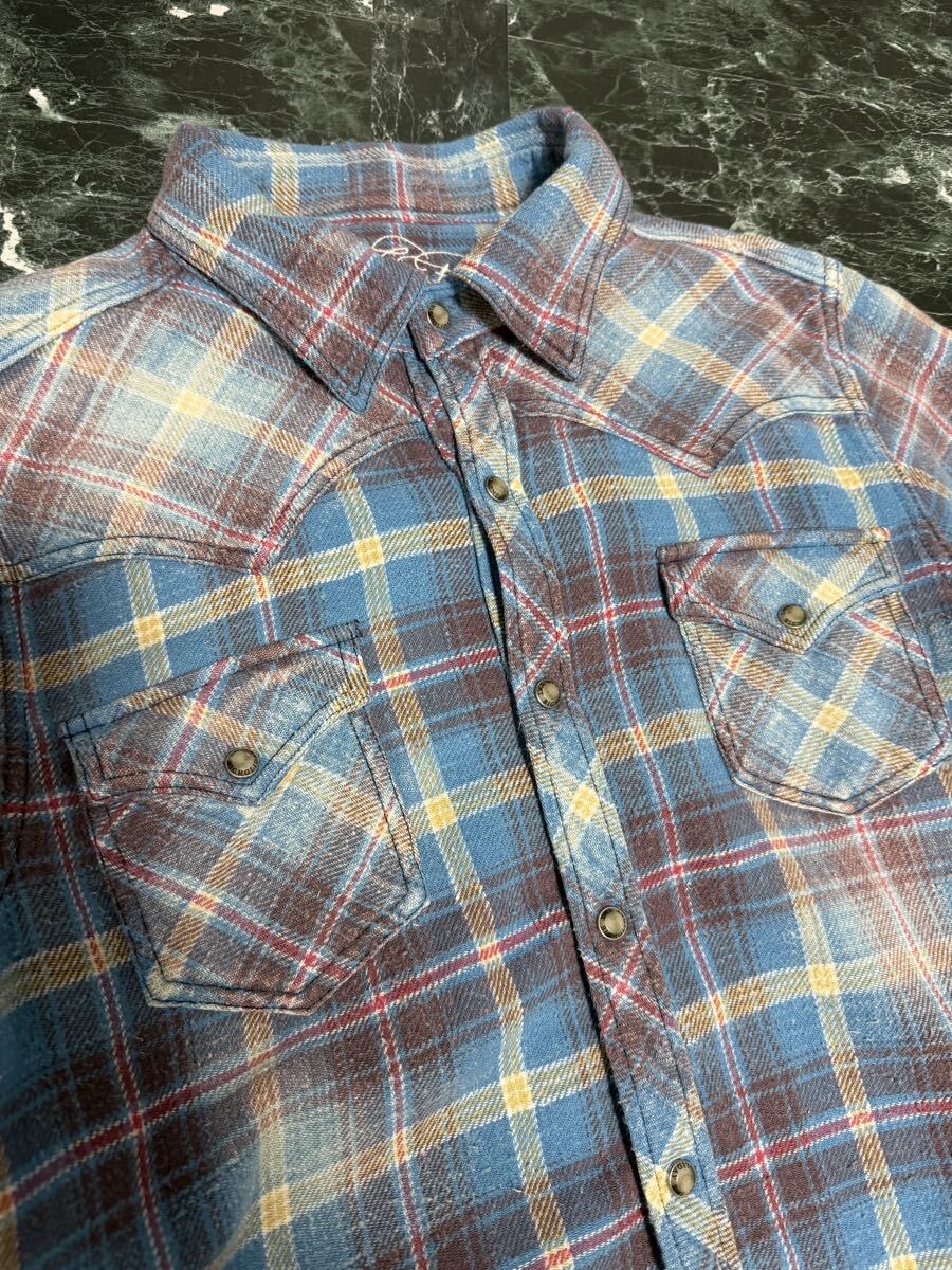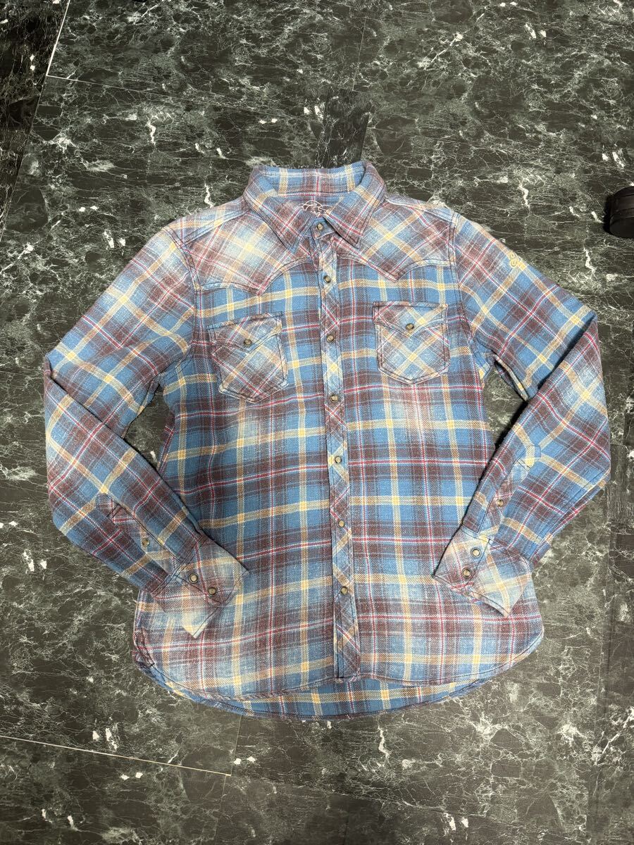 TMTのダメージ加工インディゴチェックウエスタンネルシャツになります!| 出价者 | 信用 | 价格 | 时间 |