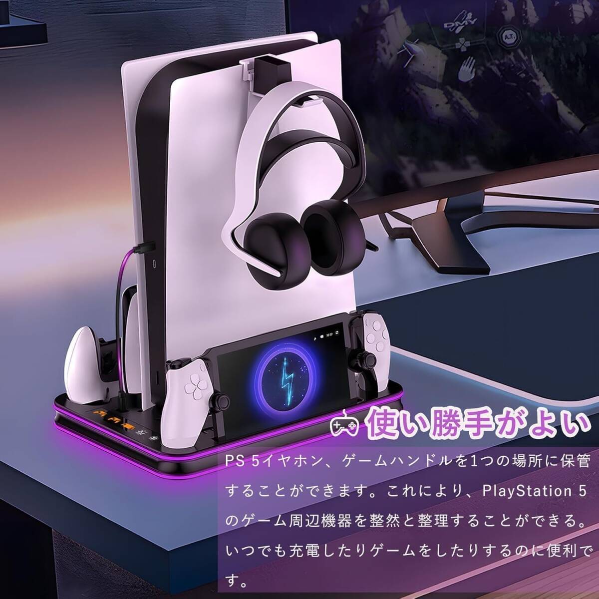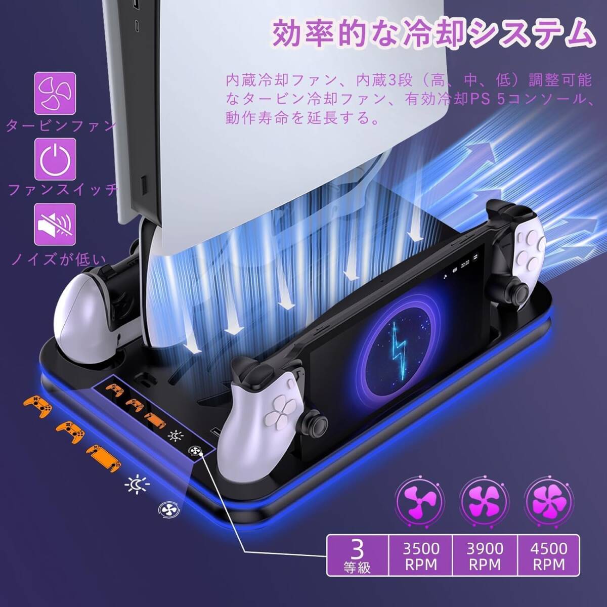 | 【PS5 Pro/PS5 Slim/PS5 本体対応】このアップグレード版充電スタンドは、PS5 Pro/PS5 Slim/PS5 通常版とデジタル版ゲーム機向けに設計されています。2024 PS5 Pro、2023新型PS5 Slimと2020旧型PS5の通常版とデジタル両方と互換性があります、よりスムーズなゲーム体験をもたらすように設計された多機能縦型冷却スタンドです。PS5本体放熱、二つコントローラーとPS Portal リモートプレーヤー 同時充電可能。LED充電指示ランプにより、充電状態を一目で確認することができます。橙色のライトは充電中を示しています、青色のライトはスタンバイ/充電完了を示します。 【3段階速度調整の冷却ファン】ps5 冷却スタンド 、高速冷却ファン内蔵され、 強力な放熱により、コンソールの内部熱を素早く排出します。3段階(高、中、低)に調節可能なターボ冷却ファンを内蔵し、4500/3900/3500 RPMの回転数を実現。放熱効果を高め、長時間のゲームプレイでもPS5を効率よく冷却します。PS5コンソールを効果的に冷却し、動作寿命を延ばします。 【5種類の雰囲気灯】本ps5 冷却スタンドには雰囲気灯タッチスイッチが付いており、タッチスイッチによって雰囲気灯のモードを制御することができ、オン後に雰囲気灯コントロールボタンを2秒長く押すとオフになる。雰囲気灯には、赤、緑、青、紫、グラデーション灯の5つのモードがあり、好みに合わせて切り替えることができます、より興味深いゲーム体験を楽しむことができます。 【PS5 コントローラー & PS Portal 3台同時充電スタンド 】充電スタンドは2台のPS5コントローラーを同時に充電することができ+PS Portal リモートプレーヤー 用 充電器。LEDインジケーターは充電状態を明確に示します。充電中は赤いランプが点灯し、満充電になると緑のランプが点灯します。充電時間は約3時間で、コントローラーを素早く効率的にパワーアップできます。 【収納に便利】このPS 5スタンドは、あなたのPS 5イヤホン、ゲームハンドルを1つの場所に保管することができます。これにより、プレイステーション5のゲーム周辺機器を整然と整理することができます。また、PSゲームデバイスを使用するときに便利になります。多くのゲーマーにとって、これはPS 5ゲームの周辺機器を保管する絶好のプレゼントでもある。L47 |