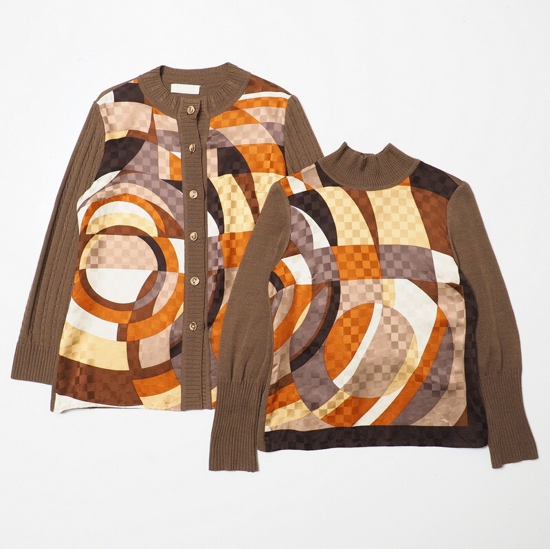 | TJ3240*NICE CLUB by MIMO MODA シルク×ウールニット アンサンブル カーディガン+ハイネックセーター Size 40 ブラウン系 | |||