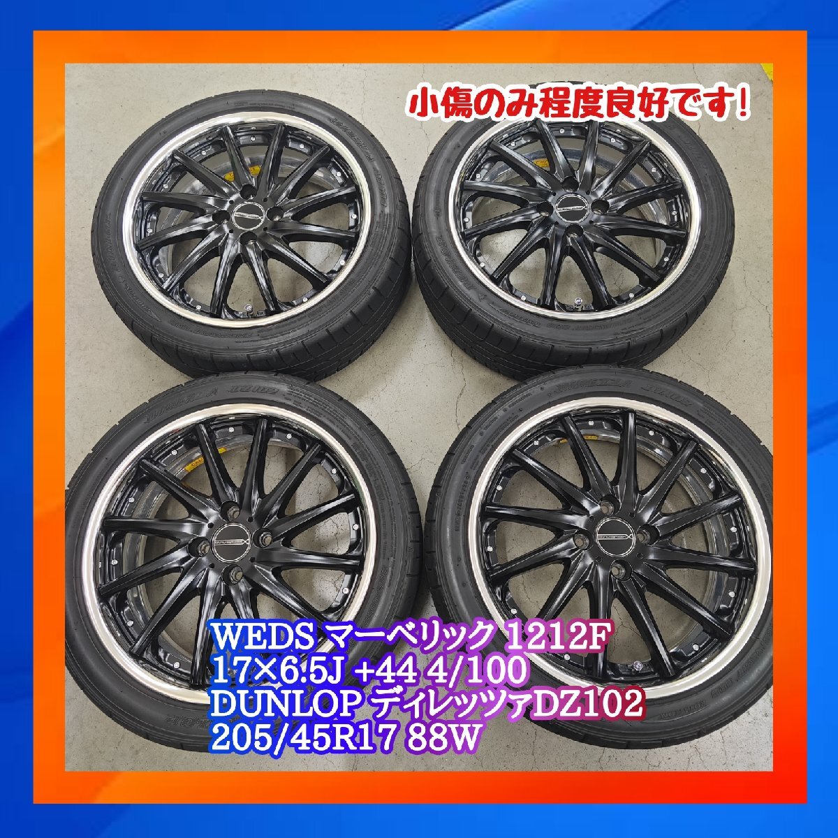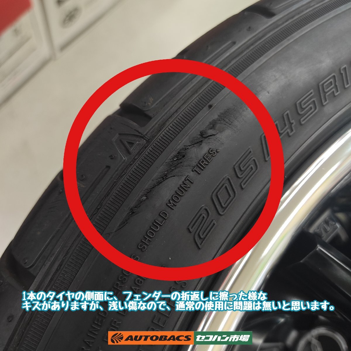 | [タイヤ詳細] | DUNLOP ディレッツァDZ102 サイズ:205/45R17 1本のサイドウォールにフェンダーの折り返しと接触したと思われる傷がありますが、浅い傷なので、通常の使用には問題ないレベルの傷だと思います。 製造年:2023年第18週×3、17週×1 残り溝:画像でご確認ください |