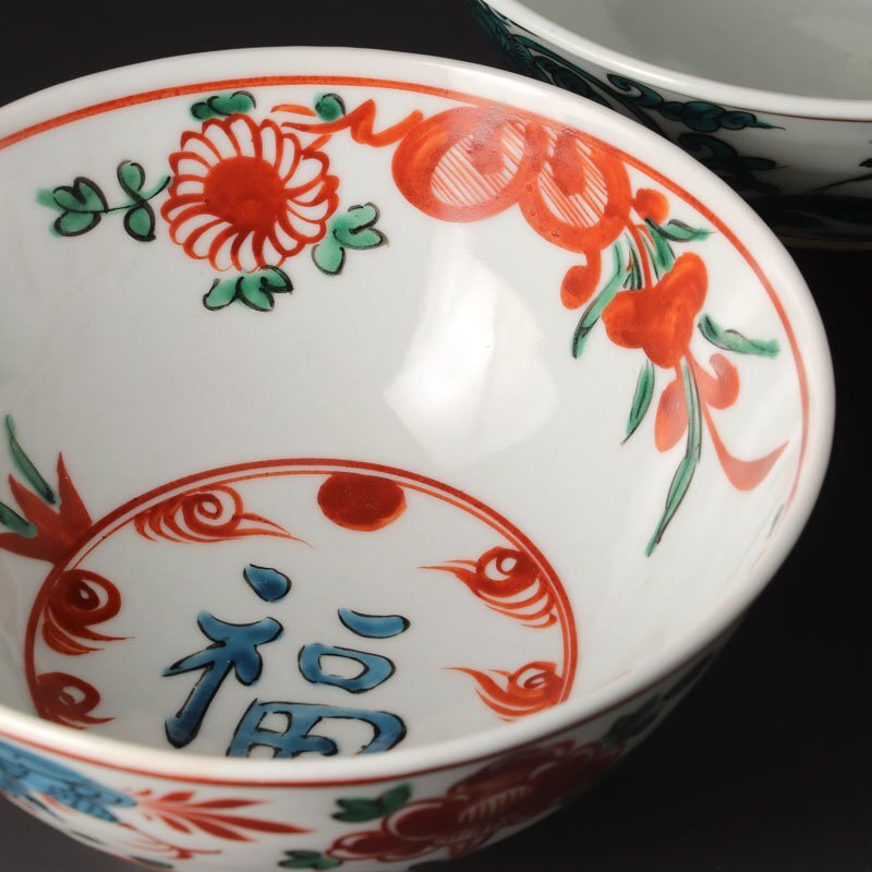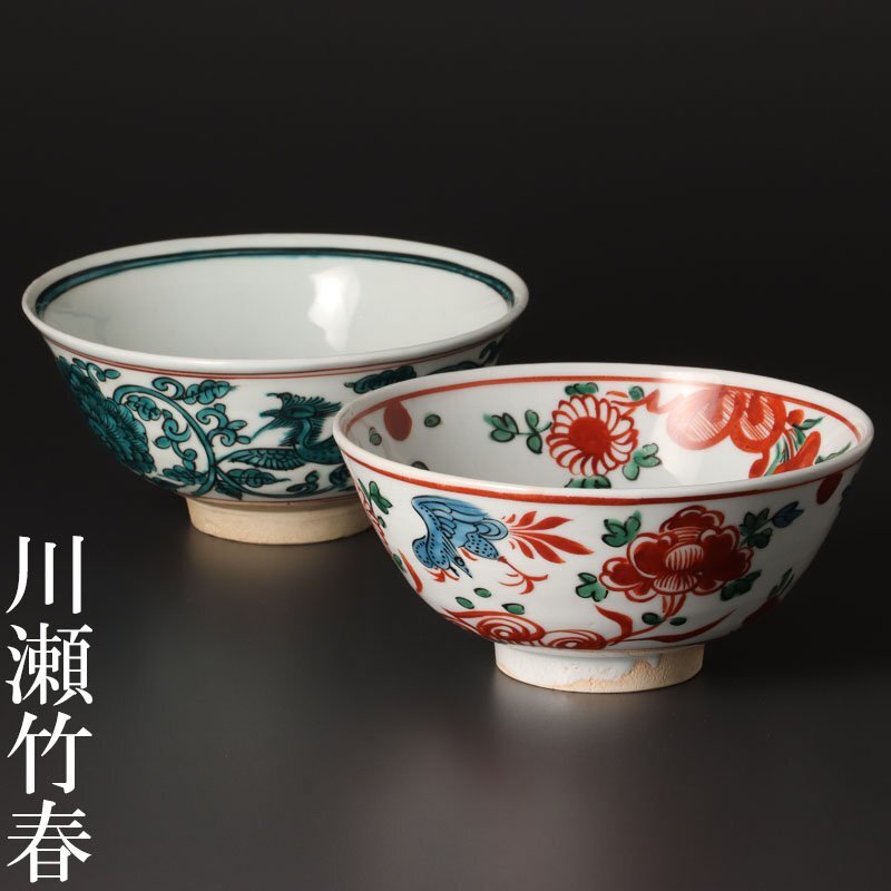 華やかな絵付けの鉢、二客セットです。大変美しい仕上がりです。 ★商品は初代川瀬竹春の作品である事を保証致します。 |