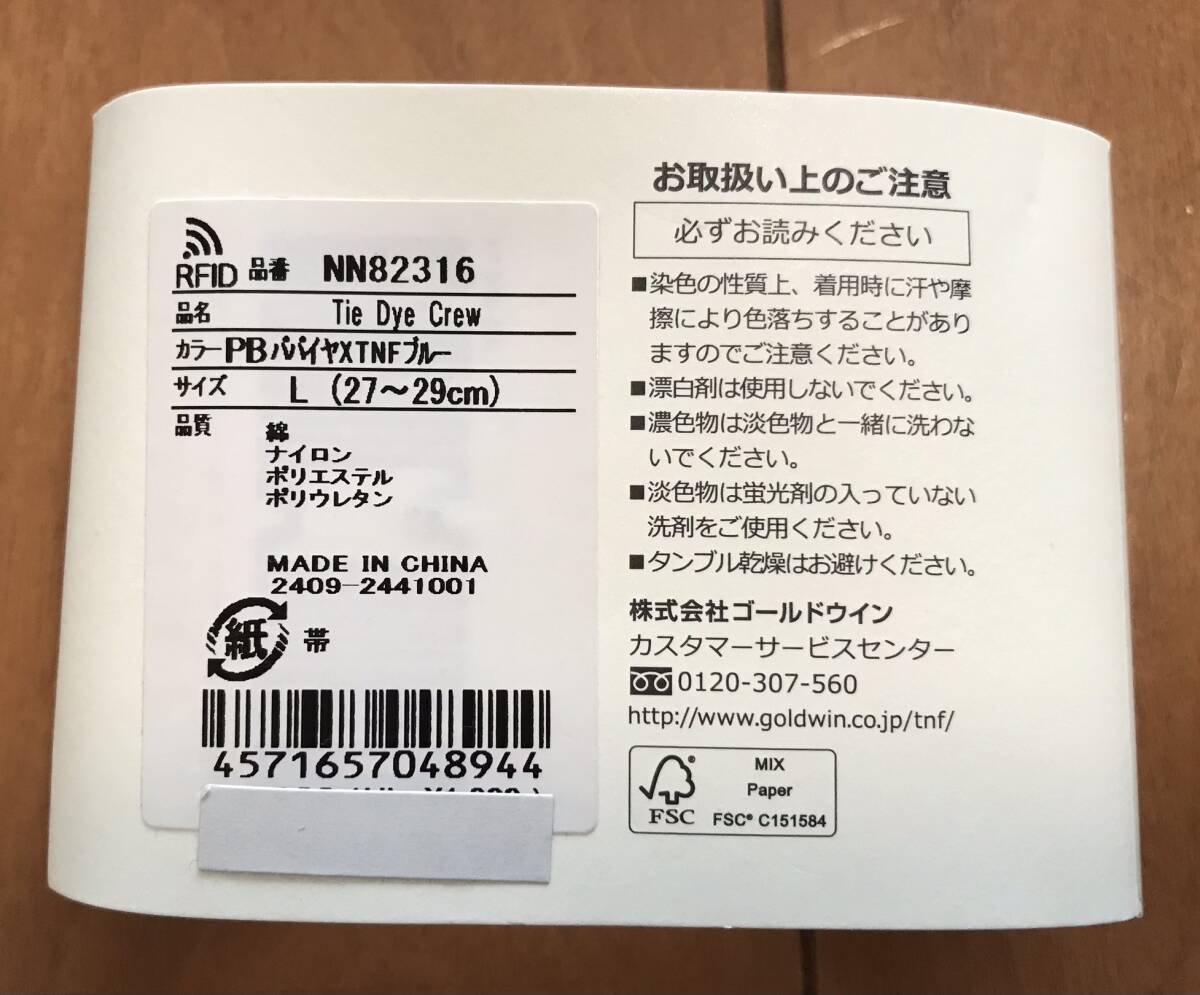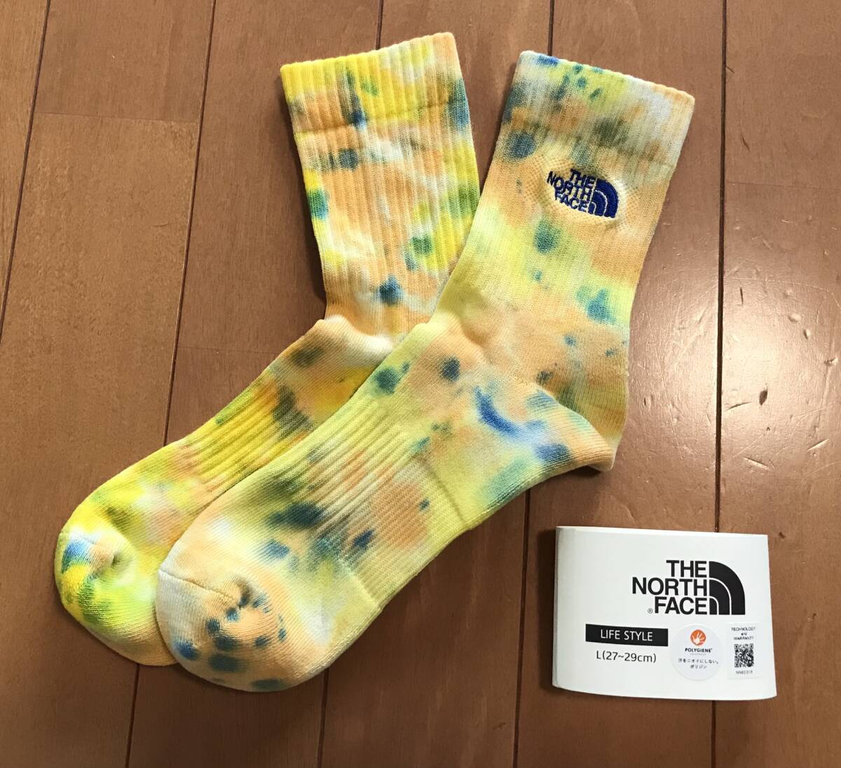 未使用のTHE NORTH FACEのタイダイ柄のソックスです。 サイズはL(27~29cm)です。 ◆商品の特徴(サイトより) オーガニックコットンを使用したライフスタイルクルーソックスです。 シューズとの干渉が気になるつま先とかかと部には、補強糸で強度を向上。 足裏をパイル編みで仕上げることで、足当たりが良く快適な履き心地を実感できます。 銀イオンによる抗菌防臭効果を発揮するポリジン・ステイフレッシュ加工で、イヤなにおいを抑制。 足もとのコーディネートが楽しめる、日常の機能的なカジュアルアイテムとして活用できます。 自宅保管にご理解のうえ入札をお願いします。 ノークレーム・ノーリターンで、お願いいたします。 | |||