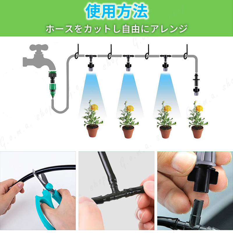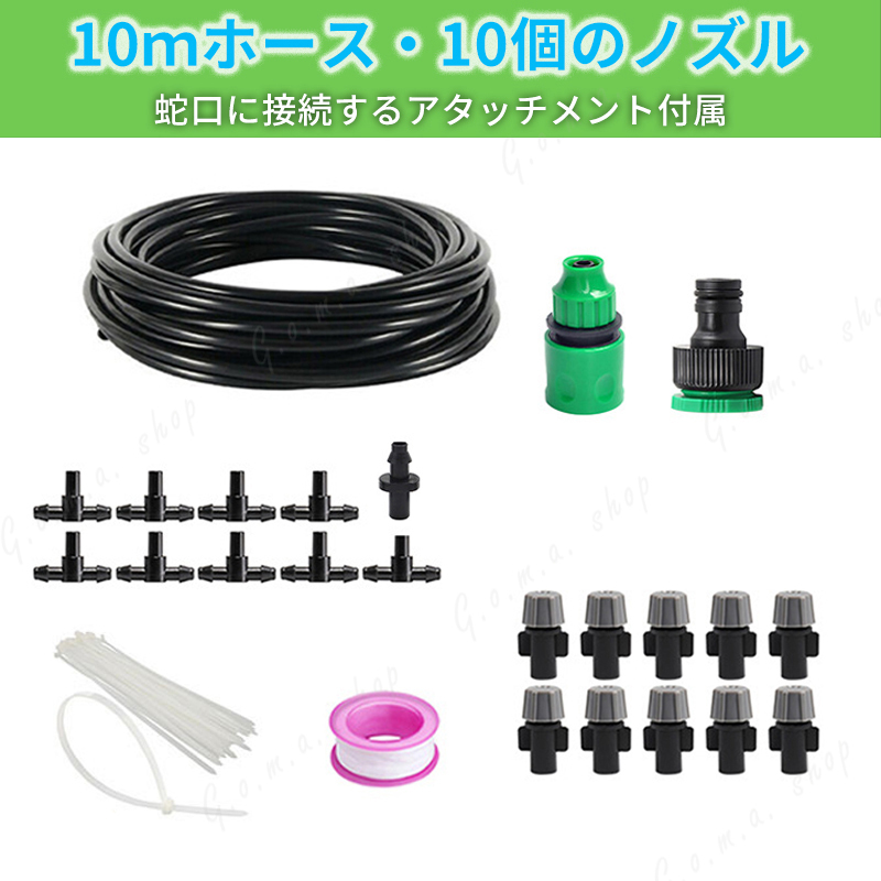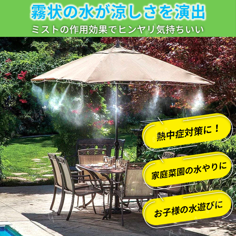 閲覧いただきありがとうございます。 水を霧状に放出して周囲をひんやり快適に! 熱中症対策に効果的なミストの気化熱効果が人気! 【屋外用 ミストシャワー】 ご家庭でも簡単なDIY作業で設置ができるセットです。 10個の噴霧アダプターと10m分の中継ホースで様々な場所に設置可能。 ●霧状の水で涼しさを演出 細かい粒子の水を噴霧し、お庭やお子様の遊び場などの気温を下げます。 視覚的にも涼しげな雰囲気を演出することができるため、夏場の屋外イベントや施設などでの暑さ対策として、またはアトラクションとして使用されることが増えてきています。 ●エコ商品 電源やポンプ等は不要!ご家庭の水道に接続して使用します。 室外機周りに設置すれば節電効果も期待できます。 【商品詳細】 ・ミストシャワーセット ・ホース:10m ・噴霧アダプター:11個(終端用アダプター込) ・ホースアタッチメント ・結束バンド:10本 ※ご利用の水は必ず上水道をご利用ください。 真夏の危険な暑さから守るエコアイテム! 家庭菜園・ガーデニングの水やり、ペットの涼む場所としてお庭に憩いの場をつくりませんか? ■全国送料無料 ■発送方法ゆうパケットポストで発送いたします。 ※複数ご購入の場合は1個づつ手続きをお願いいたします。 ゆうパケットポストの配送方法でこの価格となります。 購入して頂いた日から2~3日で発送いたします。 到着目安は 約3~5日となります。 ポスト投函で完了となります。 |