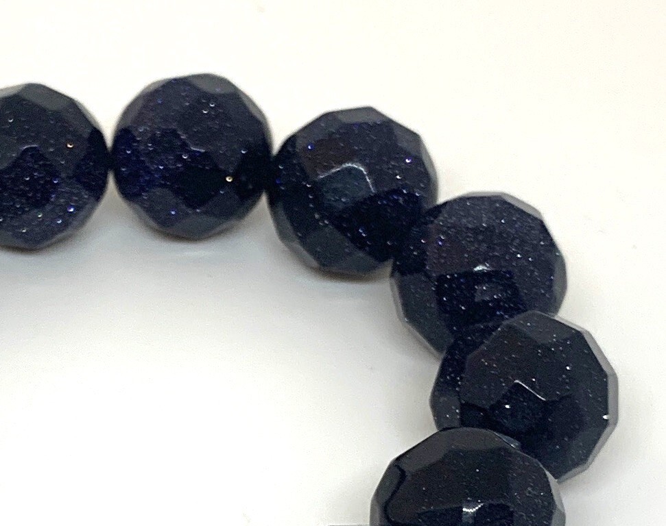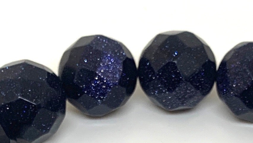 ブルーゴールドストーン(紫金石)別名ブルーサンドストーン。この石には、まるで夜空に煌く星空のような輝きが見られます。ブルーゴールドストーン(紫金石)には、出会い、チャンスを引き寄せるという意味があります。前向きな人生を目指したい人には、きっと良いパワーを与えてくれるでしょう。新しい環境が始まる人にピッタリです。明るい光のエネルギーに満ち「マイナス」を「プラス」へ変化させてくれます。「不安」「恐怖」「悲しみ」「怒り」などのネガティブな雑念を、綺麗にリセットしてくれます。またブルーゴールドストーン(紫金石)は、財運アップの効果があるパワーストーンで、持ち主のビジネスを成功に導く力が宿っています。資産の拡大を目指す時にもオススメです。