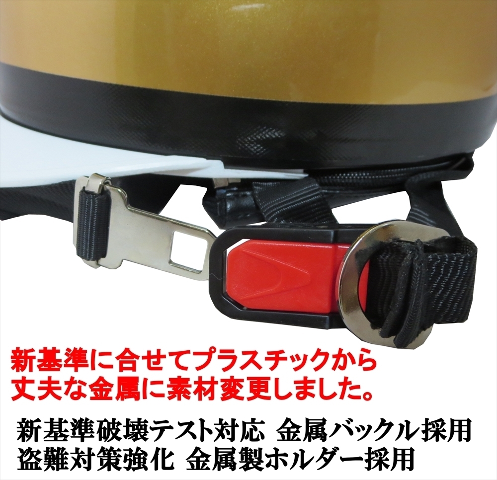 | 製品仕様 | ■新SG規格対応 ■ワンタッチバックル ■サイズ調整スポンジ付き ■内装メッシュ生地 ■ヘルメットホルダー ■脱着式耳当て |