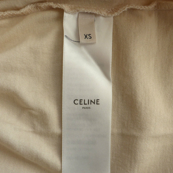 | セリーヌ(CELINE) コットン リンガー Tシャツ カットソー ロゴ XS ベージュ×レッド 2X575671Q ウェア(中古) |