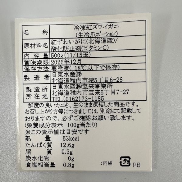 品 名:冷凍紅ズワイガニ(生冷爪ポーション)