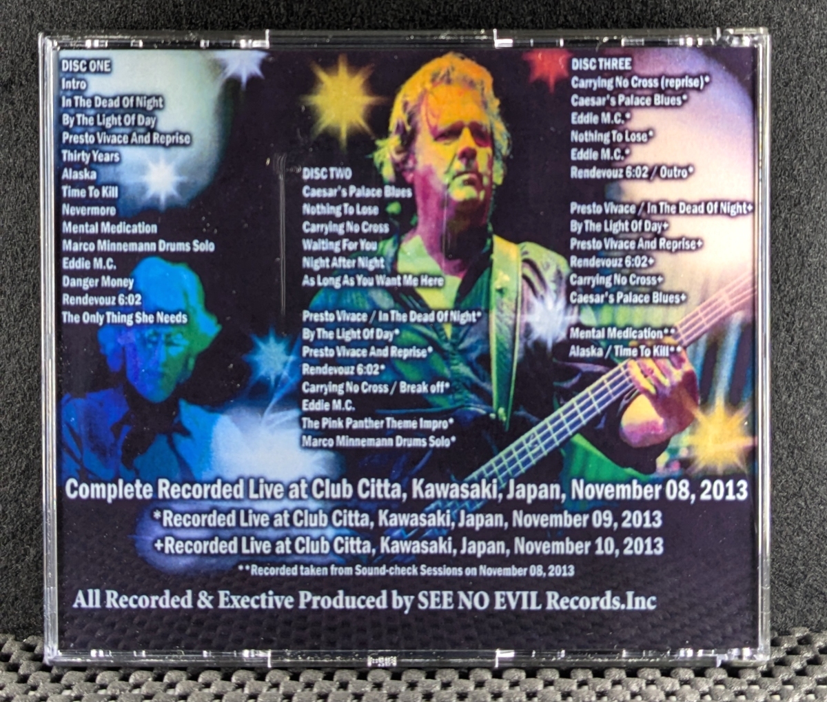 DISC ONE : Intro / In The Dead Of Night / By The Light Of Day / Presto Vivace And Reprise / Thirty Years / Alaska / Time To Kill / Nevermore / Mental Medication / Marco Minnemann Drums Solo / Eddie M.C. / Danger Money / Rendevouz 6:02 / The Only Thing She Needs