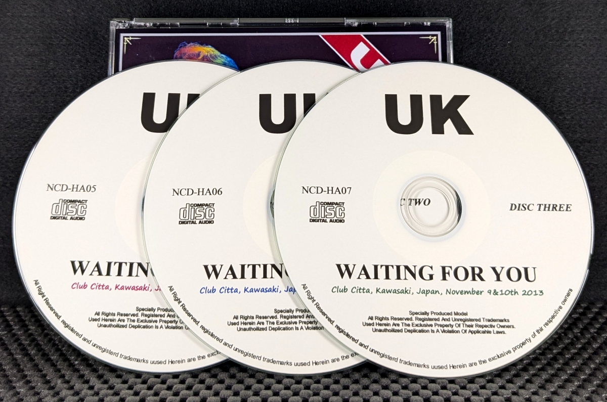 2013年エディ・ジョブソンの40周年記念ライブの前に、緊急決定した11月8日川崎クラブ・チッタでの、一夜限りのU.K.スペシャルライブをコンプリートでここに。急遽決まったこの再編ライブは、2011年の編成と同じく、エディ・ジョブソン、ジョン・ウェットン、アレックス・マカチェック、マルコ・ミンネマンのラインナップによるもので、しかも今回はスペシャル・ライブということで、メイン・セットはU.K.のファーストとセカンド・アルバムを全曲完全再現するというもの。2枚のアルバムから曲順通り全曲披露し、特にファースト収録の"Mental Medication"は、ライブではついに今回が本邦初プレイとなり、最大の注目となることに。さらにアンコールでは1979年にプレイされて以来となる、未だに音源化されていない未発表曲"Waiting For You"までプレイし、こちらもファンにとって大きなサプライズといえるもの。さらにボーナスとして、その翌日と翌々日に行われた、エディ・ジョブソン40周年記念 のステージから、U,K.のライブ・パートを、それぞれ9日公演は67分、10日公演は37分、追加でこれらもコンプリート。そのうえ8日のサウンド・チェックも18分にわたり3曲収録と、まさに2013年来日でのU.K.マテリアルを完全網羅!