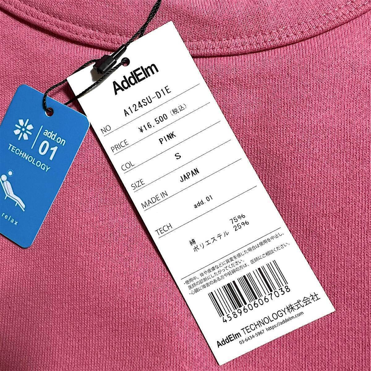 タイトル 新品 AddElm アドエルム 定1.6万 日本製 Made in japan 休養&睡眠の質向上 袖プリント リラックスウェア 長袖 スウェット トレーナー プルオーバー リカバリーウェア S メンズ ユニセックス GOLF スポーツ 部屋着 ルームウェア 普段使い タウンユース ピンク系