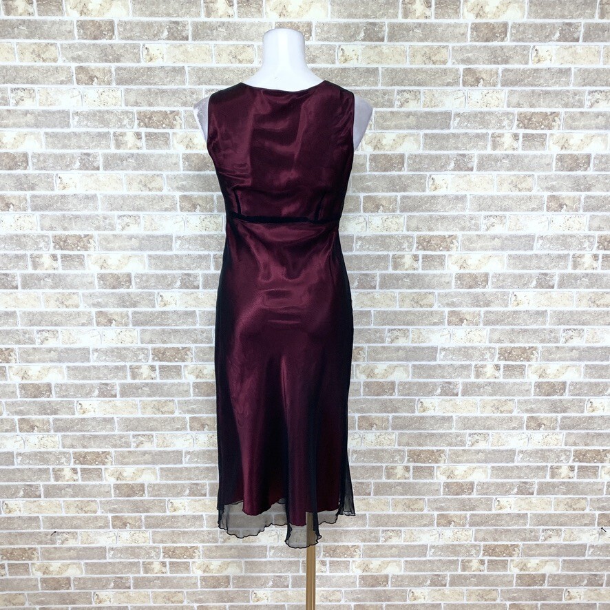 1円ドレス【ネコポス可】 Cest La vie セラビ ロングワンピース 9AR-1 中生地赤黒 シホンサテン カラードレス 中古16841