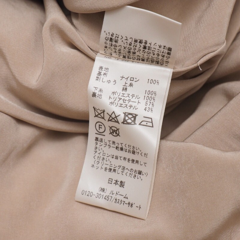 表地 基布 ナイロン100% 刺しゅう 上糸 コットン100% 下糸 ポリエステル100% 裏地 トリアセテート57% ポリエステル43% |