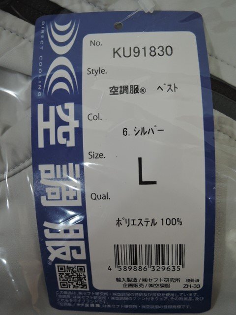 | 株式会社 空調服 Lサイズ ベスト(KU91830)/スターターキット(SKSP02G) 2点セット/未使用品 | ||||