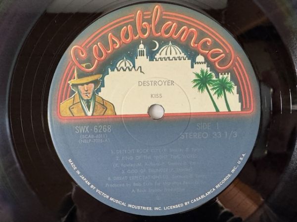 通常、カサブランカ・レーベルは「砂漠にラクダ」のデザインですが、この初回盤だけはボガート監督の映画をモチーフにした「青いレーベル」が使われています。