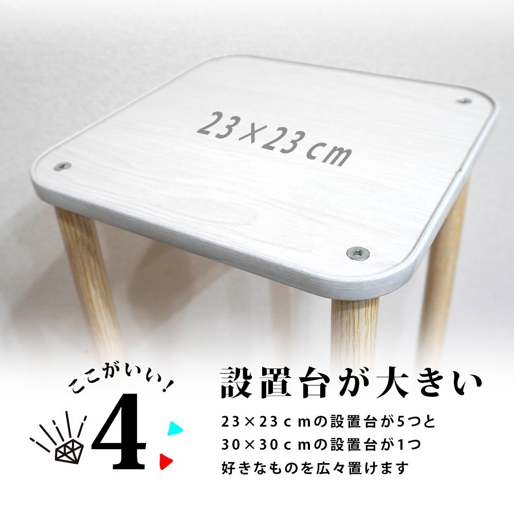 ・23×23cmの設置台が5つ、30×30cmの設置台が1つの広々設計。