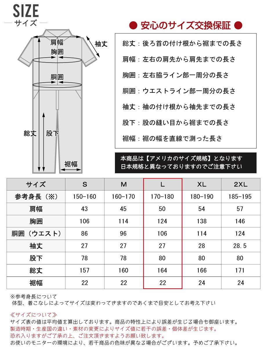 | サイズ 【画像参照】 & カラー 【画像参照】 | ≪サイズ≫ L サイズ ・参考身長170~180cm ・肩幅50cm ・胸囲124cm ・袖丈27cm ・ウエスト106cm ・股下80cm ・裾幅22cm ≪カラー≫ タイトル名【 画像参照 】 ※本商品は『アメリカ規格』です。日本規格の衣類とサイズの規格が異なっておりますのでご注意下さい。 ■:本商品の【 サイズ・カラー 一覧 】 ■:人気の【 名入れ刺繍 】 ■:Dickiesの【 商品一覧 】 | 返品・交換 | ※返品・交換可能期間は商品お届け後、一週間以内となります。 (プリント・刺繍・返品・交換不可記載商品は返品不可) ※返品・交換詳細はコチラのご利用案内をご覧下さい。 |