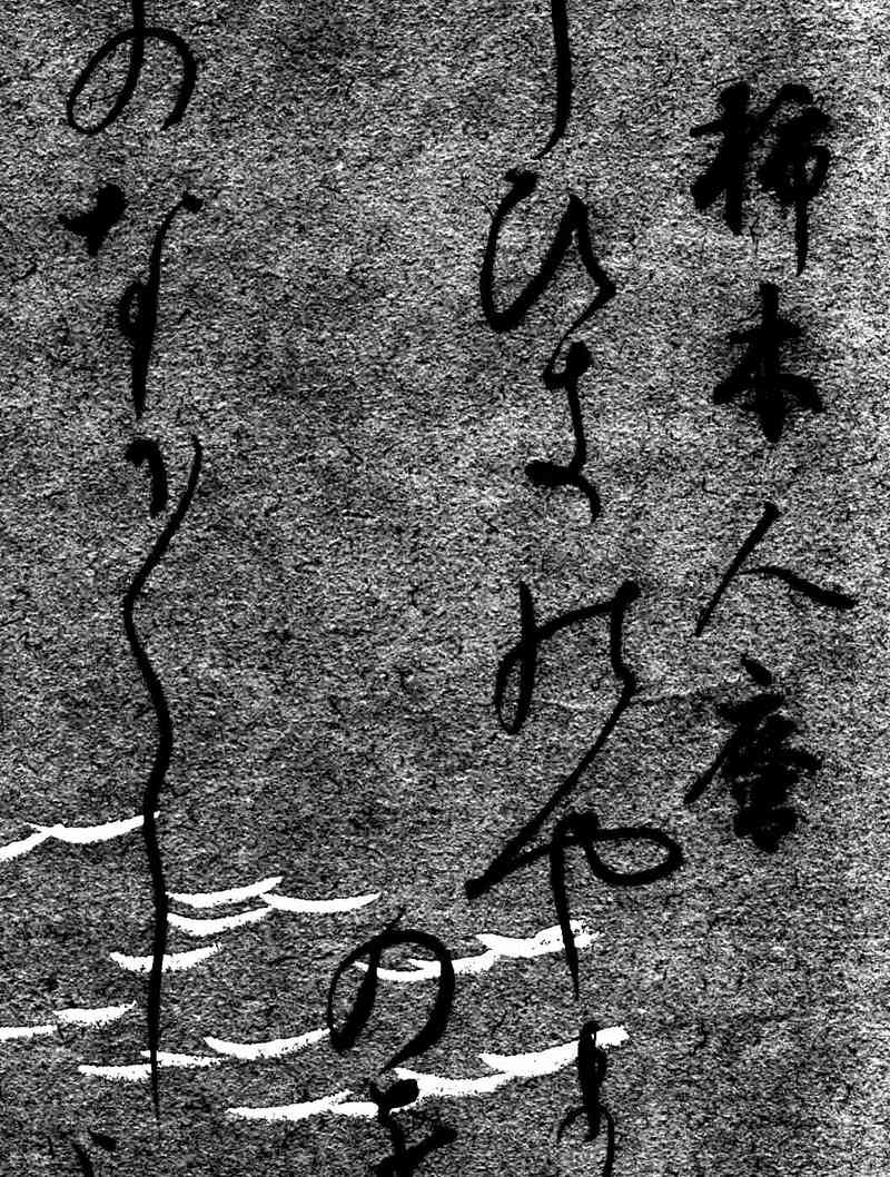 自筆切の稀少価値は、和紙の生成技法の緻密さにあります。日本の和紙の場合、極めて薄い和紙の上に墨の文字がくっきりと浮き上がることが断層画像写真によって鮮明となります。肉眼では見ることのできない和紙の繊維の一本一本のミクロの世界を見ることができます。自筆原本は茶会用の掛軸から外され海外展示のために再表装をしております。掛軸や屏風にすることが可能なように、「Removable Paste(再剥離用糊)」を使用しているため、自筆の書に影響をあたえずに、容易に「剥離」することができるような特殊な表装となっております。
