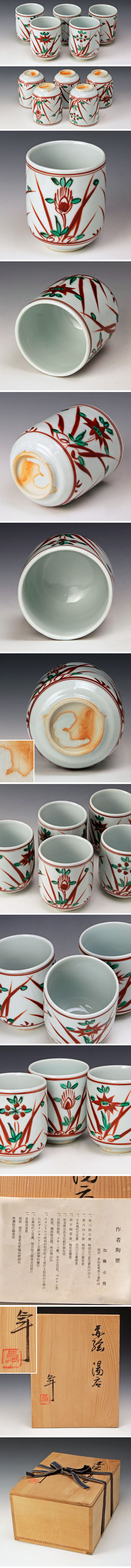 | 【古美味】人間国宝 加藤卓男 赤絵湯呑 五客 茶道具 保証品 |